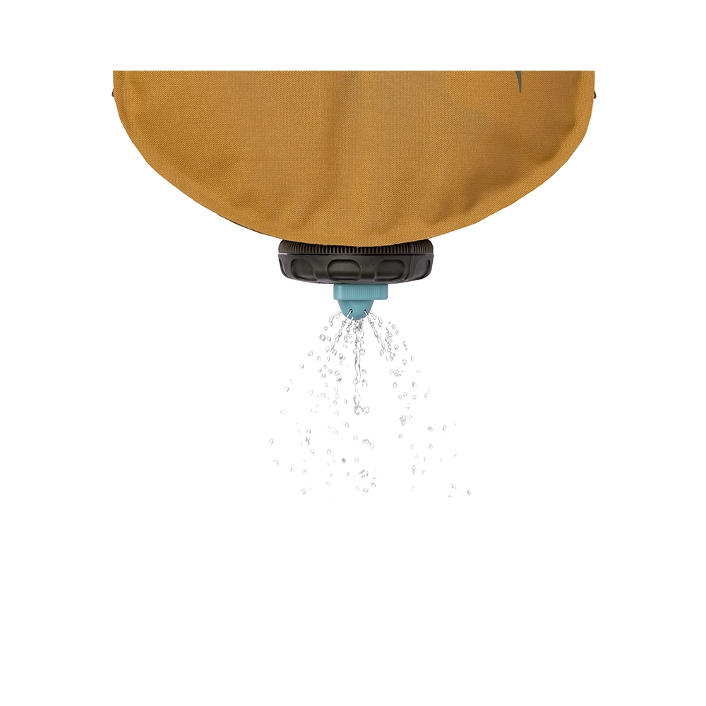 Niesamowicie mocny materiał Nylon 400D, zgrzewane szwy w technologii RF oraz kompaktowy kształt 3d to tylko niektóre cechy tego wyjątkowego bukłaka. Dzięki zastosowanym materiałom oraz konstrukcji przegród mamy produkt zarówno elastyczny jak i wyjątkowo wytrzymały. Bez problemu możemy go spakować w podróż a następnie używać do wielu różnych zastosowań – na przykład do czerpania wody pitnej lub wzięcia prysznica w plenerze. Konstrukcja zapewnia również łatwe układanie kilku zbiorników w stos – jeden na drugim. Zastosowany laminat tkaniny TPU nie zawiera BPA, PVC, nadaje się do kontaktu z żywnością, nie zmienia smaku płynów. Otwór zbiornika ma uniwersalny gwint 63 mm, dzięki czemu będzie kompatybilny z większością systemów filtrujących do butelek. Sama zakrętka natomiast posiada wymienne centralne końcówki dozowania wody. W zestawie oprócz standardowej silikonowej wkładki dozującej mały strumień wody jest również sitko, które rozprasza strumień, umożliwiając wykorzystanie zbiornika jako prysznic. Wielofunkcyjne regulowane paski boczne z mocnego tworzywa pozwolą na zawieszenie bukłaka, zamocowanie do bagażu albo przenoszenia w dłoni. Sea To Summit Watercell X to niezbędnik na polu namiotowym, kempingu i wszędzie tam, gdzie sytuacja wymaga wygodnego transportu wody.