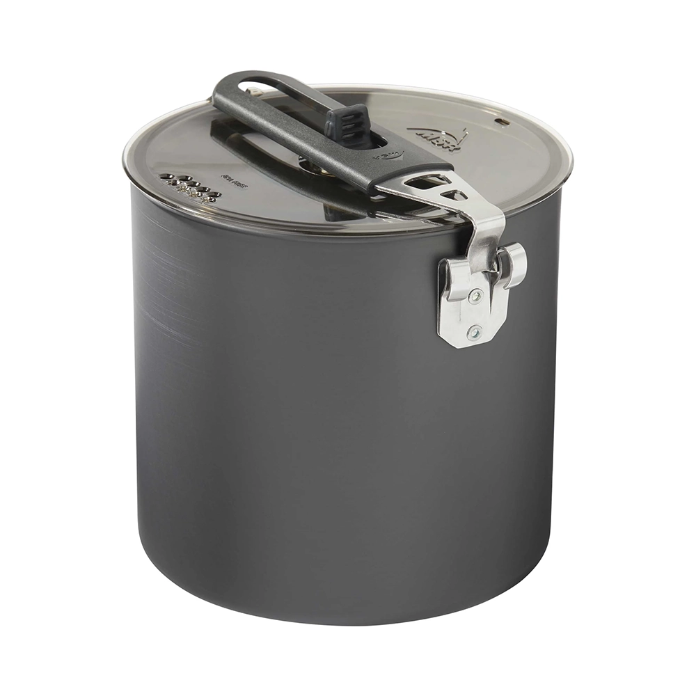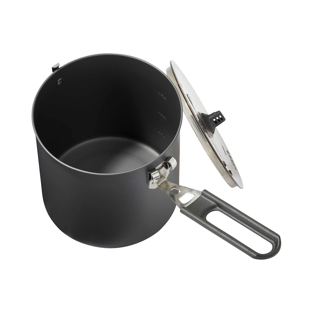 Garnek jest wykonany z anodyzowanego aluminium. Optymalna grubość materiału z którego jest wykonany zapewnia lekkość i równomierne rozproszenie ciepła podczas gotowanie. Trwały materiał jest odporny na zarysowania oraz wydłuża żywotność naczynia. Garnek jest wyposażony w transparentną pokrywkę z wylotem pary co ułatwia gotowanie. Składany uchwyt umożliwi kompresję naczynia, dzięki czemu bez problemu spakujemy go do plecaka. MSR Trail Lite 2L Pot to idealne rozwiązanie dla 2-3 osób na gotowanie w plenerze.
