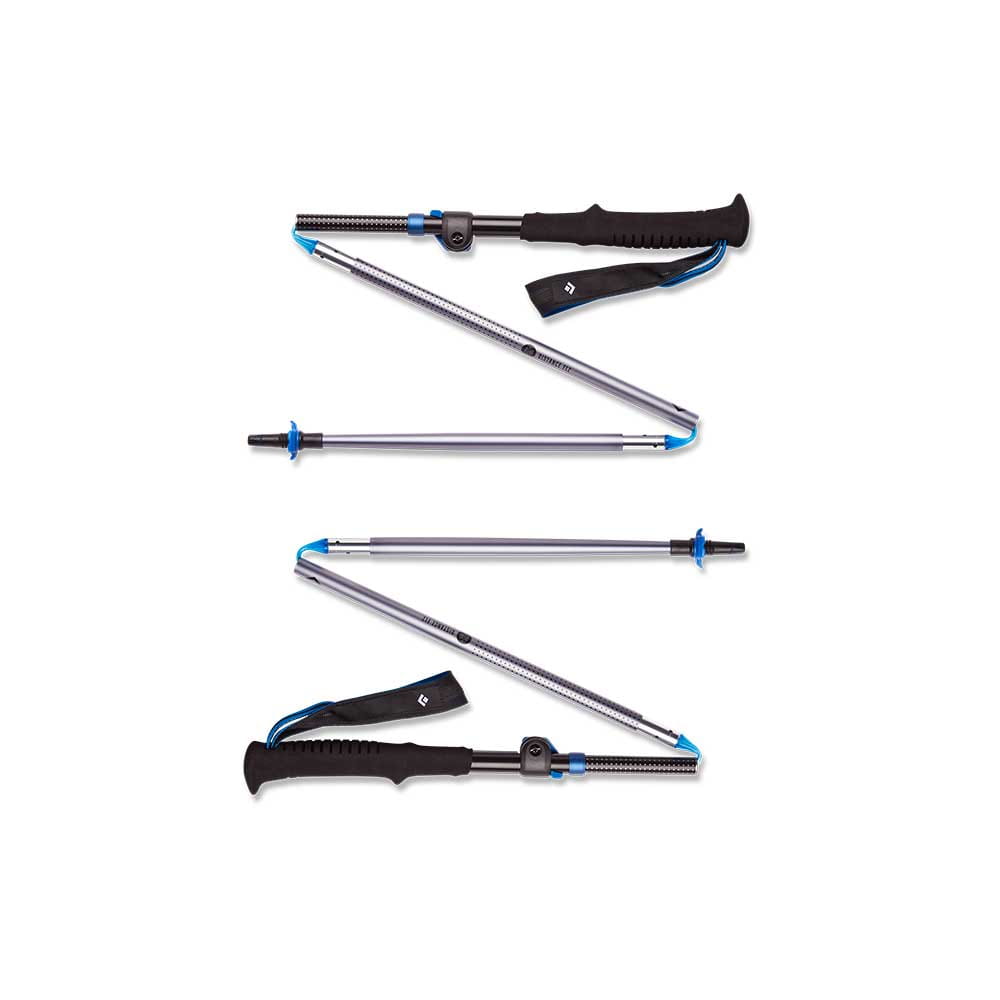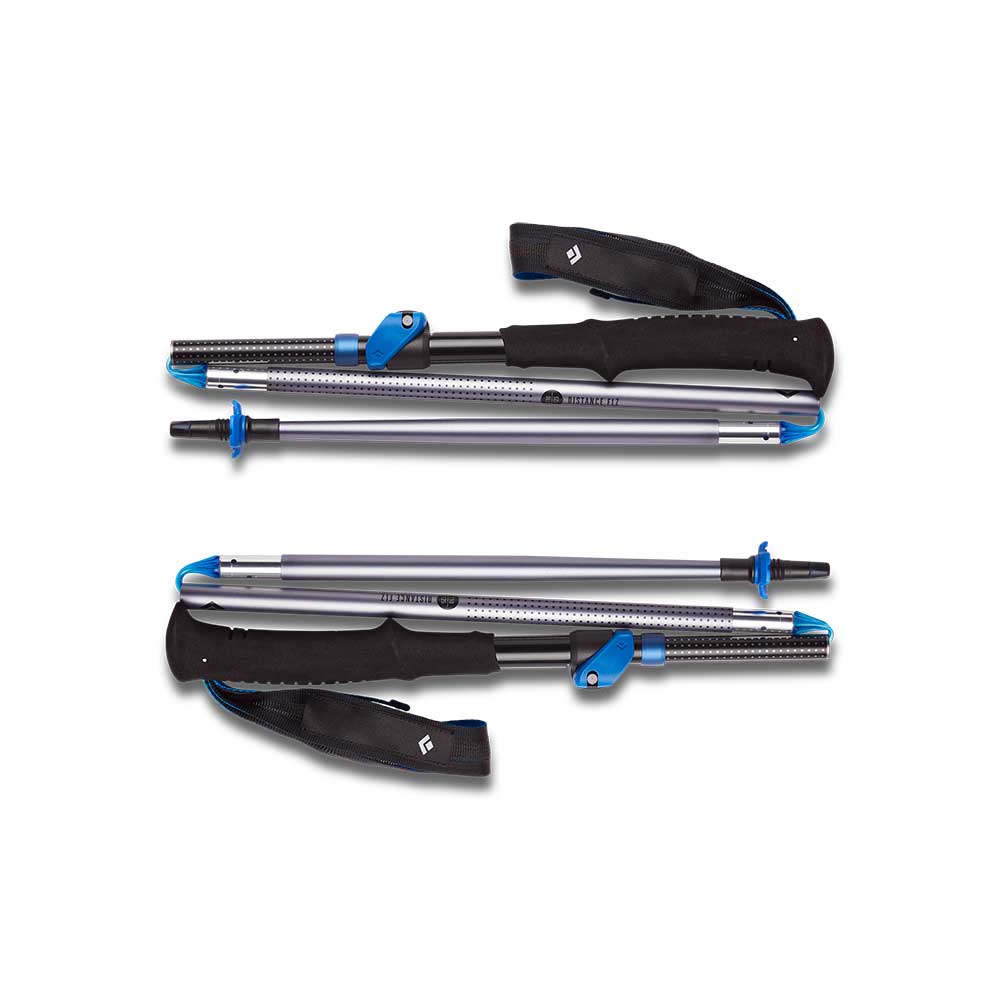 Te trzy-sekcyjne kije kompresują się do naprawdę małych gabarytów, dzięki czemu bez problemu spakujesz je do bagażu. Składana konstrukcja kijów działa w oparciu o system Z-Pole. Wyposażone są również w mechanizm blokady FlickLock®. Kije są wykonane z aluminium. Miękki w dotyku i ergonomiczny uchwyt jest wykonany z pianki EVA. Posiada dodatkowo żłobienia ułatwiające przepływ powietrza oraz krótkie przedłużenie. Rękojeść jest wyposażona w regulowany pasek, wykonany z użyciem materiałów z recyklingu. W zestawie znajdują się również talerzyki trekkingowe (30 mm oraz 55 mm) oraz dodatkowe wymienne groty zakończone tworzywem. Model ten posiada regulację długości wyłącznie na jednym segmencie. Dzięki Black Diamond Distance FLZ będziesz przygotowany na każde warunki na górskich szlakach. Doskonale sprawdzą się przy podejściach, dłuższych trekkingach a nawet na skitourowe szaleństwa.