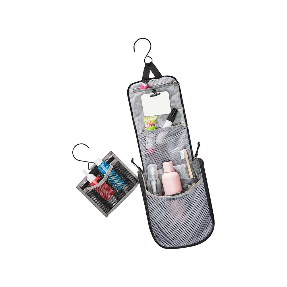 Wykonana z grubego materiału, otwierana szerokim rozpięciem wzdłuż całego obwodu. Kosmetyczka posiada wyjmowaną zawieszkę, w której można umieścić np. szampon, mydło i zawiesić bezpośrednio pod prysznicem. Zawieszka wykonana została z szybkoschnącej siatki. Wewnątrz kosmetyczki znajdują osobne przegródki na kosmetyki, duża komora na schowanie np. ręcznika szybkoschnącego. W klapie znajdują się dwie kieszenie zapinane na suwak, jedna wykonana z materiału druga z siatki. Od zewnętrznej, tylnej strony znajduje się duża kieszeń zapinana na suwak. Wyposażona jest w lusterko, które można odpiąć (jest zamocowane za pomocą taśmy z guzikiem). Całą kosmetyczkę można podwiesić przy pomocy chowanego haczyka.