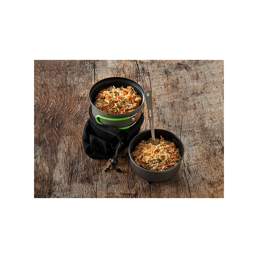 Gotowy na kulinarną podróż bez granic? Trek'n Eat Risotto warzywne to pełnowartościowy posiłek, który przeniesie Cię do serca włoskiej kuchni, gdziekolwiek jesteś! Doskonała opcja dla miłośników trekkingu, bushcraftu i każdej ekstremalnej wyprawy. Teraz możesz cieszyć się smakiem domowego risotto nawet na szczycie gór czy w głębi lasu! To nie jest zwykłe risotto – to starannie dobrana kompozycja ryżu okrągłoziarnistego (37%) oraz bogatej mieszanki warzyw: fasoli fava, pomidorów, cebuli, groszku, marchwi i selera. Wzbogacone o wegański sos, zapewnia doskonały smak i sycący efekt, idealny po dniu pełnym aktywności.