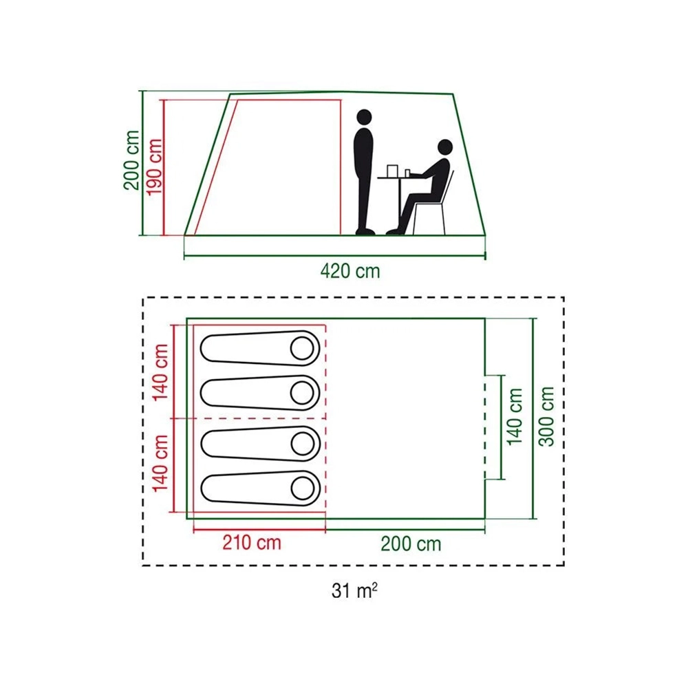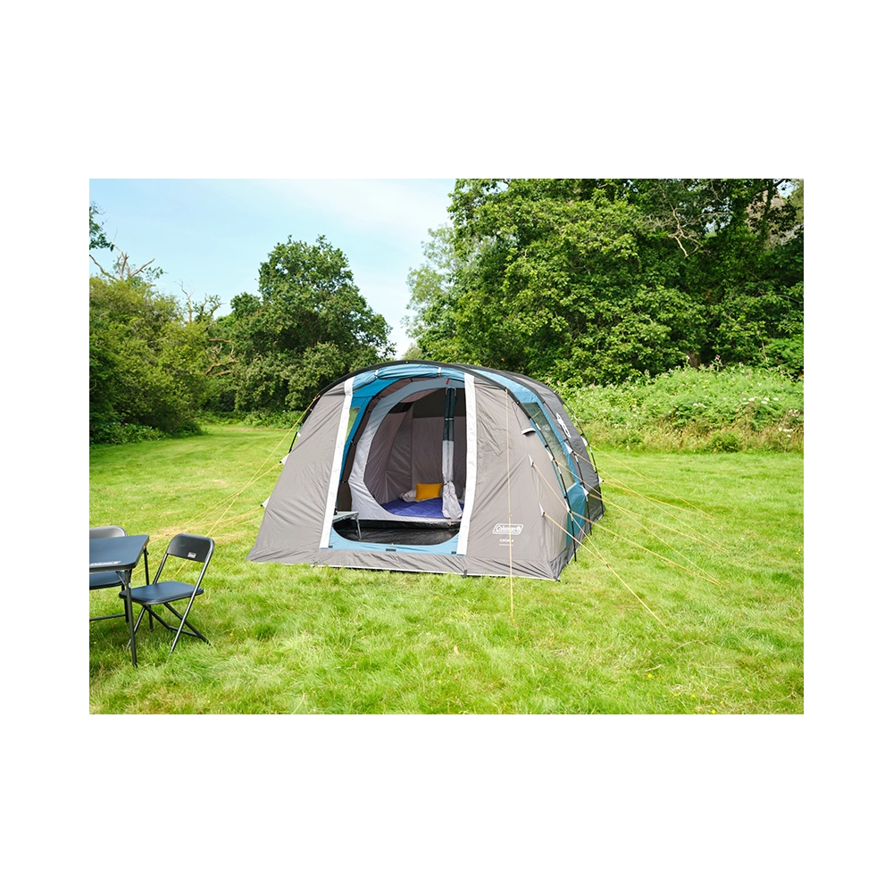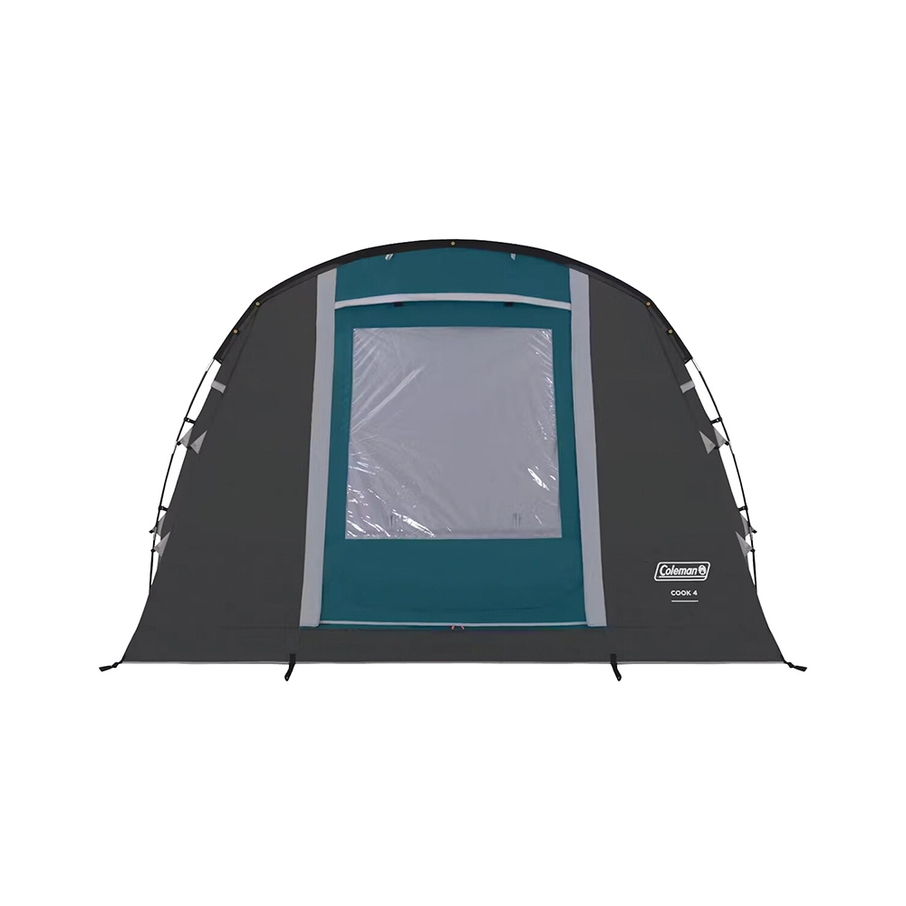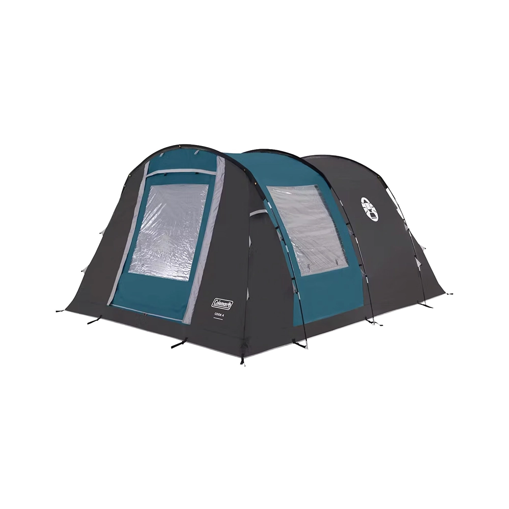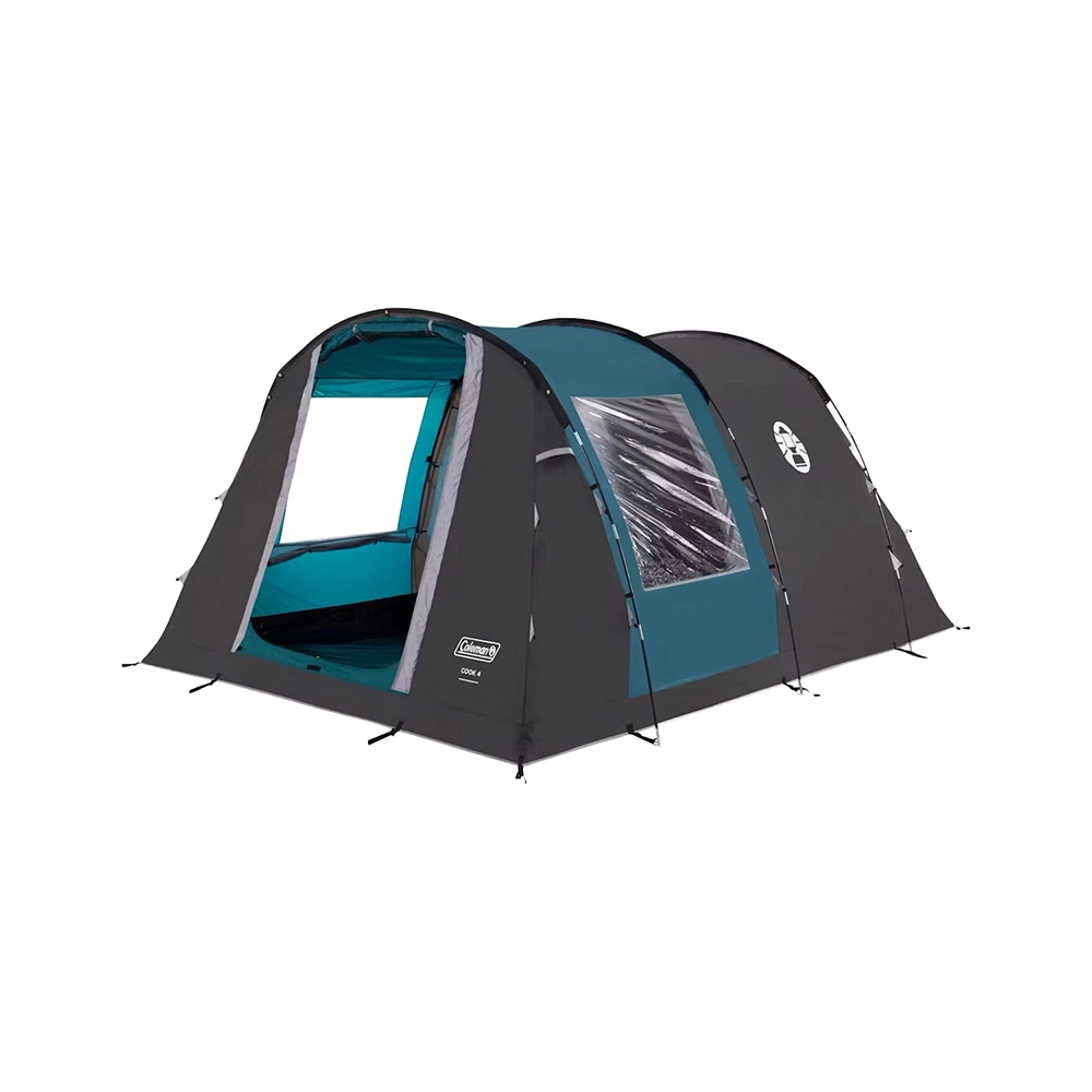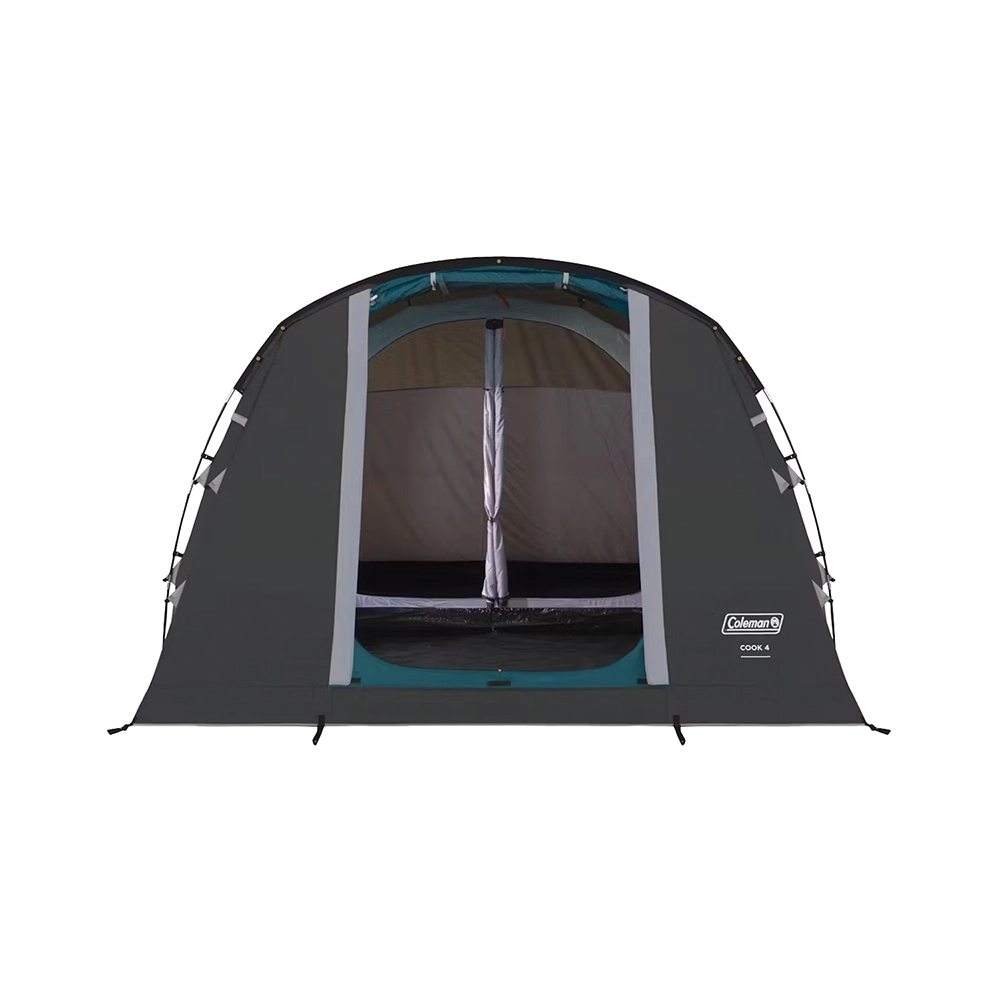 Coleman Cook 4 pomieści bez trudu 4 osobową rodzinę. Sprawdzi się również bardzo dobrze jako namiot dla grupy znajomych czy też wędkarzy. Sypialnia pomieści 4 osoby a przedsionek jest na tyle duży że bez trudu można będzie w nim spędzać czas w trakcie złej pogody. Sypialnia jest dzielona przegrodą, którą w łatwy sposób można zdemontować, tworząc w ten sposób jedną dużą. Namiot posiada duże, szerokie wejście od frontu oraz duże okna w przedsionku do zapewnia odpowiednią ilość światła. Tropik posiada wodoodporność (3000 mm słupa wody) a sam materiał dodatkowo chroni przed promieniowaniem UV.