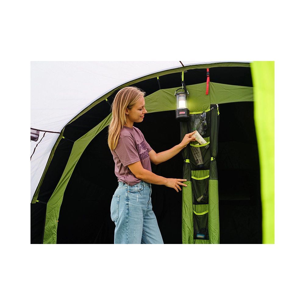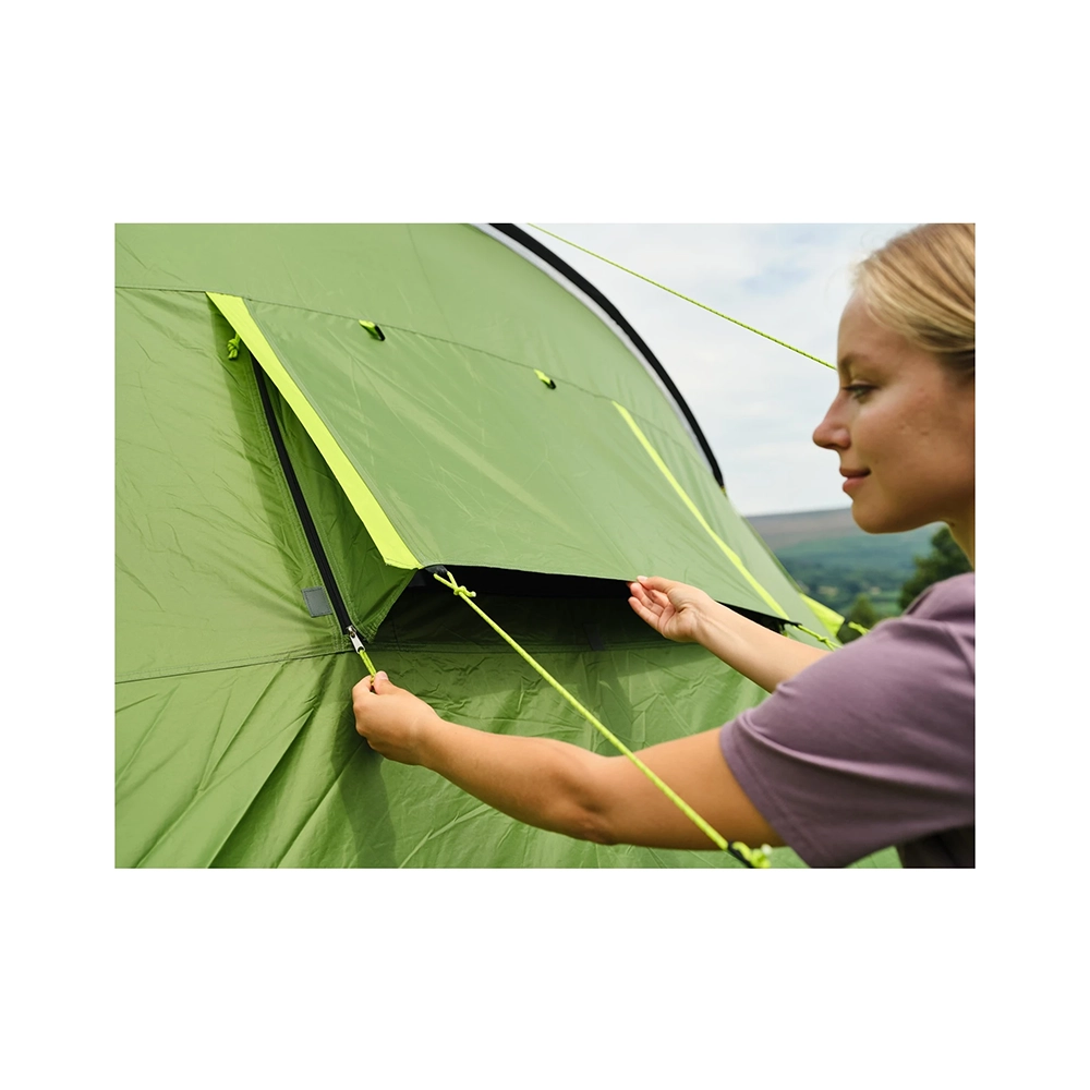 Idealne rozwiązanie dla car‑campingu, który zapewnia komfort nawet w zmiennych warunkach pogodowych. Wyposażony w przełomową technologię BlackOut Bedroom™, redukuje światło aż o 99%, co umożliwia głęboki sen do późnych godzin porannych. Wnętrze dzięki temu pozostaje nawet do 5 °C chłodniejsze w dzień, a nocą utrzymuje przyjemne ciepło – idealne dla rodzin z dziećmi i osób ceniących regenerację w ciszy i komforcie. Tunelowa konstrukcja z włókna szklanego oferuje pełną wysokość przez całą długość, ułatwiając poruszanie się bez konieczności schylania. Przestronny przedsionek z panoramicznymi oknami i moskitierami staje się świetnym miejscem do wspólnych posiłków lub relaksu – nawet gdy za oknem pada deszcz. Solidna ochrona tropiku, klejone szwy, UV Guard SPF 50, ognioodporna powłoka zapewnia suchość i bezpieczeństwo nawet podczas intensywnych opadów. Dodaj do tego wygodną, podwieszaną sypialnię z możliwością podziału na dwie niezależne strefy, liczne kieszenie wewnętrzne, praktyczne wejście na kabel zasilający, a otrzymujesz namiot, który sprawdzi się podczas rodzinnych wakacji i dłuższych wypadów.