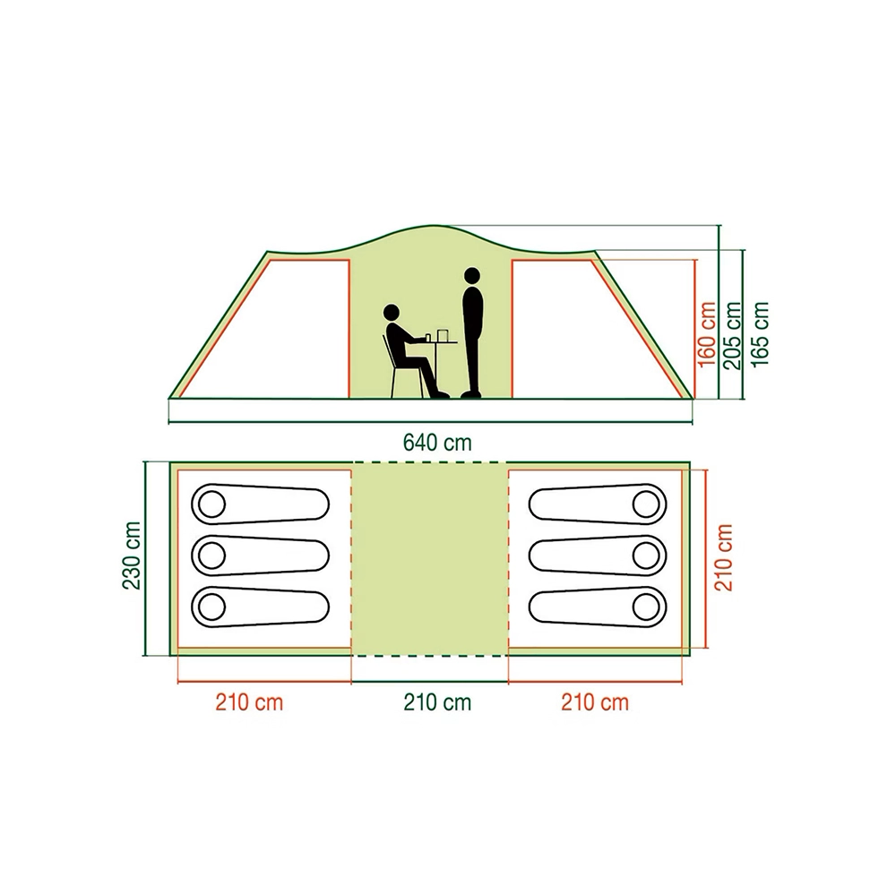Szukasz przestronnego i komfortowego namiotu na rodzinny wyjazd lub biwak ze znajomymi? Coleman Spruce Falls 6 to idealny wybór dla osób ceniących wygodę, bezpieczeństwo i funkcjonalne rozwiązania podczas wypoczynku na świeżym powietrzu. Namiot przeznaczony jest dla 6 osób i wyposażony w dwie sypialnie usytuowane naprzeciw siebie, co zapewnia większą prywatność. Centralna strefa dzienna jest jasna i przestronna — doskonała do wspólnego spędzania czasu niezależnie od pogody. Tropik wykonano z trwałego poliestru o wodoodporności 3000 mm/m², a podklejone szwy i zintegrowana podłoga z wysokimi panelami bocznymi skutecznie chronią wnętrze przed deszczem i wilgocią. Dodatkowo, tkanina posiada powłokę UV Guard™, która ogranicza przenikanie szkodliwego promieniowania UV. Lekki, a zarazem solidny stelaż z włókna szklanego gwarantuje stabilność. Wejście wyposażono w wygodny próg Easy Entry, ułatwiający wchodzenie i wychodzenie — szczególnie dzieciom i osobom starszym. W komplecie znajduje się podpory do frontowego daszku oraz praktyczna torba transportowa ułatwiająca przewożenie namiotu. Wnętrze wyposażono w moskitiery, kieszenie do przechowywania drobiazgów oraz okna zapewniające odpowiednią wentylację i naturalne światło.