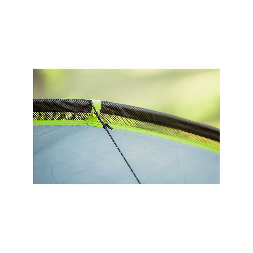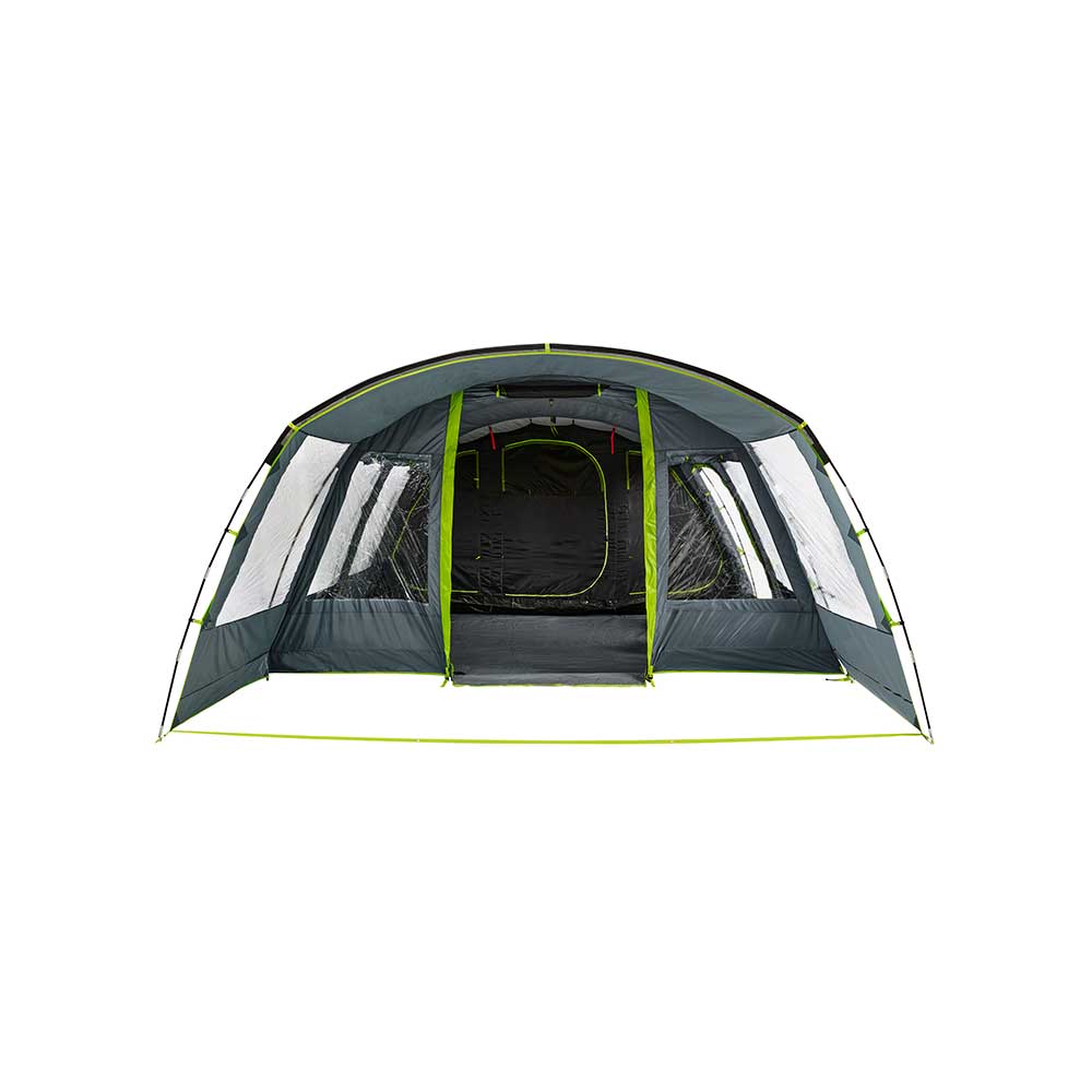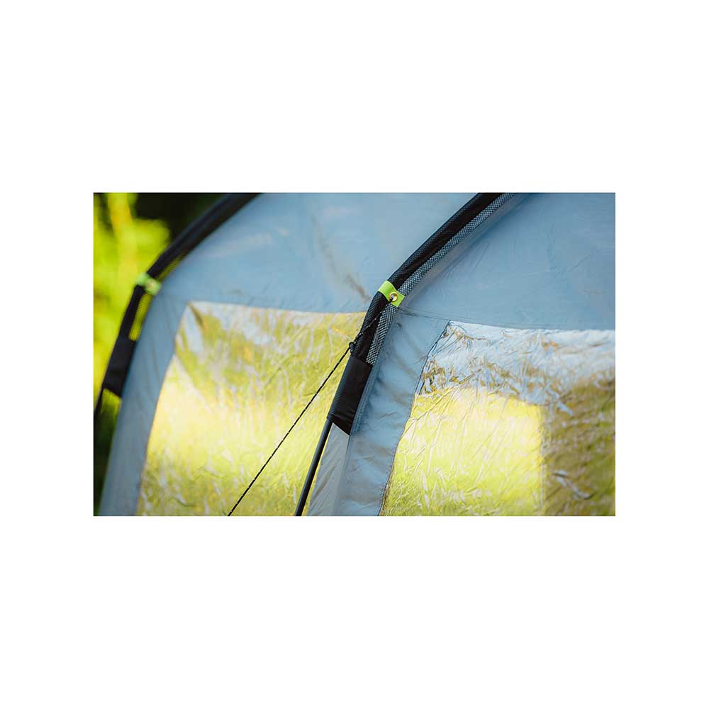 Praktyczny podział części sypialnianej na trzy pokoje dwuosobowe daje poczucie prywatności, a przedłużany przedsionek pozwala na ustawienie sporej ilości mebli kempingowych takich jak np. duży stół z krzesłami. Duże okna z zasłoną rozjaśnią wnętrze przedsionka, a dodatkowy segment wysunięty od frontu namiotu osłania główne wejście od deszczu. Pozwala on również w tym miejscu na urządzenie letniej kuchni. Tropik wykonany jest z poliestru o wodoodporności 4000 mm gwarantuje to przyjemne korzystanie z namiotu nawet podczas niekorzystnych warunków atmosferycznych. Impregnacja Fire Retardant chroni przed wilgocią, a UV Guards chroni przed promieniami ultrafioletowymi.
