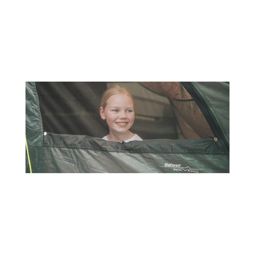 - Funkcjonalność: Liczne kieszenie z siatki wewnątrz sypialni ułatwiają organizację drobnego sprzętu turystycznego