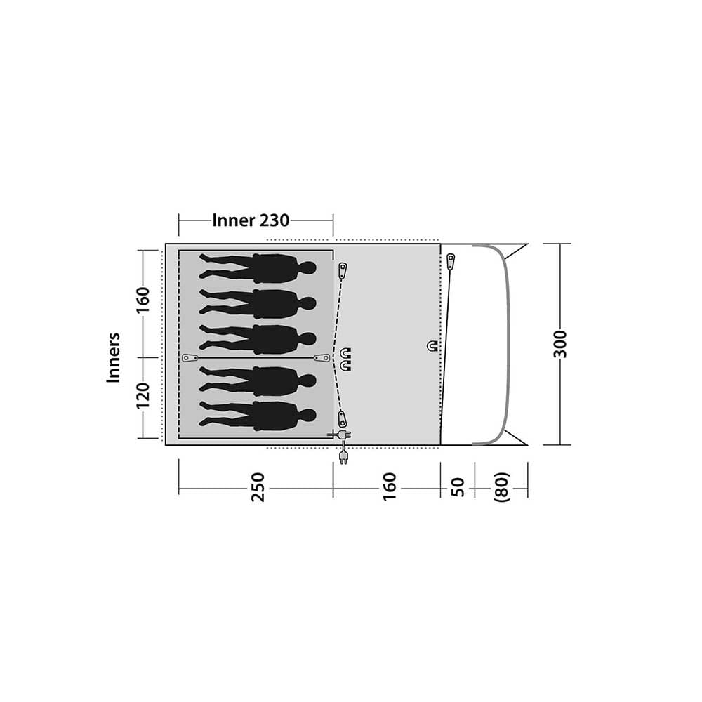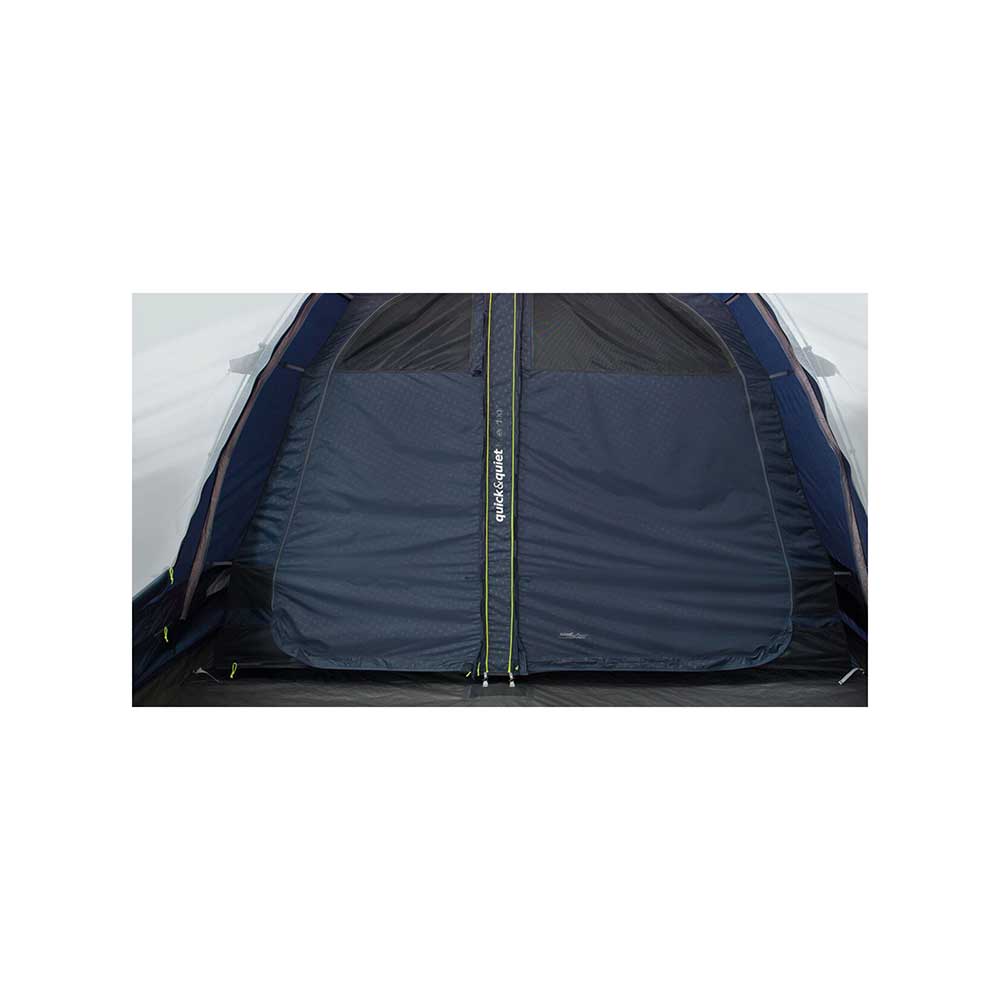 Produkt ma konstrukcję tunelową. Model ma tropik i sypialnię, które wykonano z poliestru. Z tego samego materiału wykonano podłogę sypialni, z kolei podłoga zintegrowana z tropikiem powstała z polietylenu. Tropik ma wodoodporność na poziomie 6000 mm słupa wody. Co więcej, oferuje również częściową ochronę przed promieniowaniem UV. Tkanina tropiku dla Twojego bezpieczeństwa jest samogasnąca. Model ten ma konstrukcję ze stelażem zewnętrznym. Całość opiera się na pałąkach z wytrzymałego włókna szklanego. O stabilność konstrukcji zadbają również odciągi łączące ze sobą pałąki, tkaninę tropiku i kołki mocujące. Odciągi w tym modelu wykonano z jasnej linki, co poprawi ich widoczność po zmroku. Model ma wewnątrz dwie sypialnie, które wykonano z przyciemnianego materiału, zapewniającego komfortowy sen po wschodzie słońca. Wewnątrz zastosowano również zamknięcia z listwami magnetycznymi, w celu bezgłośnego używania drzwi sypialni. Produkt ma klasyczne drzwi wejściowe od frontu. W przedsionku umieszczono obszerne okna. Model ma również otwory umożliwiające przełożenie przez nie przewodów elektrycznych. Wewnątrz masz możliwość podwieszenia systemu na oświetlenie. Namiot dostarczany jest w pokrowcu transportowym. W modelu tym zastowosano system Q&Q Mesh Access we frontowych drzwiach.