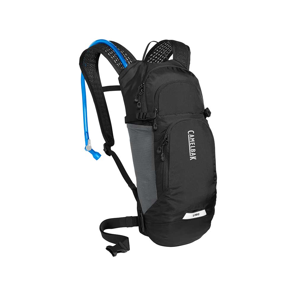 Plecak Lobo o pojemności 9 L wyposażony jest w udoskonalony system nawadniania. Dzięki zastosowaniu nowej wersji bukłaka CRUX użytkownik zasysa o 20% więcej wody niż w poprzednich modelach. Plecak posiada pasy piersiowy oraz biodrowy, pozwalające idealnie dopasować go do sylwetki. Tylny panel plecaka jak i jego szelki są wentylowane co poprawia komfort użytkowania. Mocne, wytrzymałe magnetyczne zapięcie rurki Tube Trap zapewnia szybki dostęp do niej podczas jazdy. Ponadto plecaka wyposażony jest w specjalne klamry z haczykami przeznaczonymi do mocowania kasku. Plecak wyposażony został także w liczne kieszenie o różnej wielkości. Od frontu znajduje się nieduża kieszeń narzędziowa z wieloma przegródkami. Następnie umieszczona jest uchylna kieszeń np. na kurtkę, mała kieszonka zapinana na suwak z uchwytem na klucze. Przy samych plecach znajduje się komora główna z przegródkami z siatki oraz przegrodą dedykowaną do montażu bukłaka. Przegroda jest wyposażona w bukłak Camelbak Crux 2. Dodatkowo po obu stronach plecaka znajdują się elastyczne kieszonki z siatki.