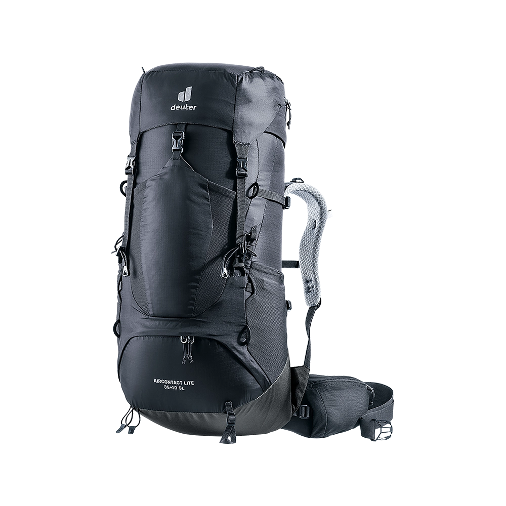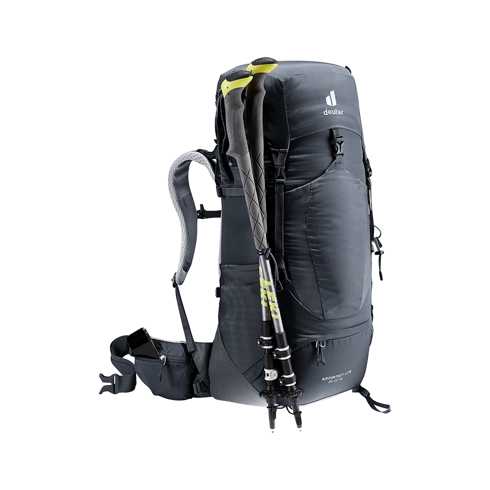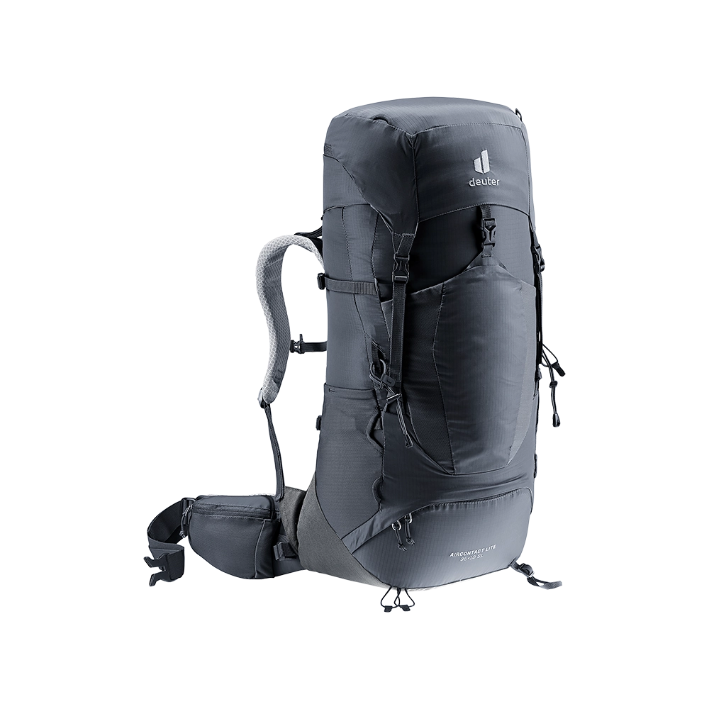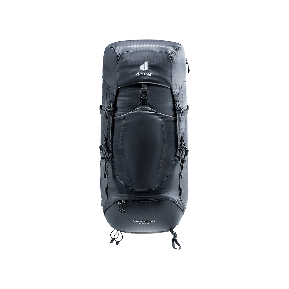 Aircontact Lite to następca znanego od wielu lat modelu ACT Lite, stanowi połączenie komfortu serii Aircontact z niską wagą serii ACT Lite. Model ten doskonale sprawdzi się podczas wypadów górskich i wyjazdów turystycznych. System nośny Aircontact Lite zapewnia komfort i wygodę nawet podczas długich, wielogodzinnych wędrówek. W tym modelu zastosowano system nośny Deuter Aircontact Lite, który składa się z dwóch rzędów poduszek wypełnionych pianką które zostały dodatkowo wydłużone ku górze, wykonane z bardziej zbitej pianki oraz pokryte nową siatką 3D AIRMESH. Szyny stelaża ułożono w kształcie litery X i taka konstrukcja pozwala na idealny balans ciężaru. Dzięki wąskiej budowie plecak bardzo dobrze sprawdza się podczas górskich wypraw. Zastosowany system Vari Quick umożliwia odpowiednie ustawienie plecaka do wzrostu. Dodatkowo wyposażenie poduszek pasa biodrowego w system ECL (Ergonomic Comfort Lock) umożliwia lepsze przenoszenie ciężaru i stabilizację plecaka na biodrach. Zastosowano system zapięcia pasa biodrowego poprzez ściągnięcie troków przed sobą, taki mechanizm wymaga od użytkowników zdecydowanie mniejszej siły przy zapięciu pasa oraz zdecydowanie poprawia precyzję jego dopasowania. Dodatkowo od frontu plecak posiada dużą elastyczną kieszeń, umożliwiającą schowanie kurtki, kasku lub mokrych rzeczy i szybsze tym samym ich wysuszenie. Wyposażony jest w 2 elastyczne kieszenie boczne, pętle do mocowania kijów trekkingowych i czekana. Na froncie znajduję się równie dodatkowe pętle do których możemy zamocować różne drobiazgi lub siatkę na kask. Na pasie biodrowym znajdują się 2 siatkowe kieszonki zapinane na suwak. Boczne pasy kompresyjne pozwalają zmniejszyć pojemność plecaka w trakcie przenoszenia mniejszych ładunków. Posiada 2 kieszenie zapinane na suwak w klapie oraz 2 komory dzielone suwakiem. Wewnątrz komory głównej posiada przegrodę na mokrą odzież lub system nawadniający. Dopełnieniem wszystkiego jest ruchomy pas piersiowy. Plecak jest kompatybilny z systemami nawadniającymi. Modele z symbolem SL (SL Women's Fit) skonstruowane są z myślą o kobietach które zazwyczaj mają krótsze plecy, dlatego plecaki z symbolem SL mają system nośny nieco krótszy niż standardowe.