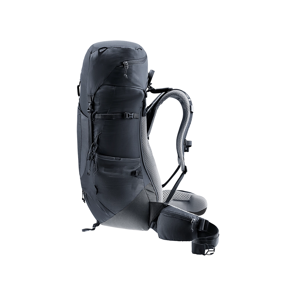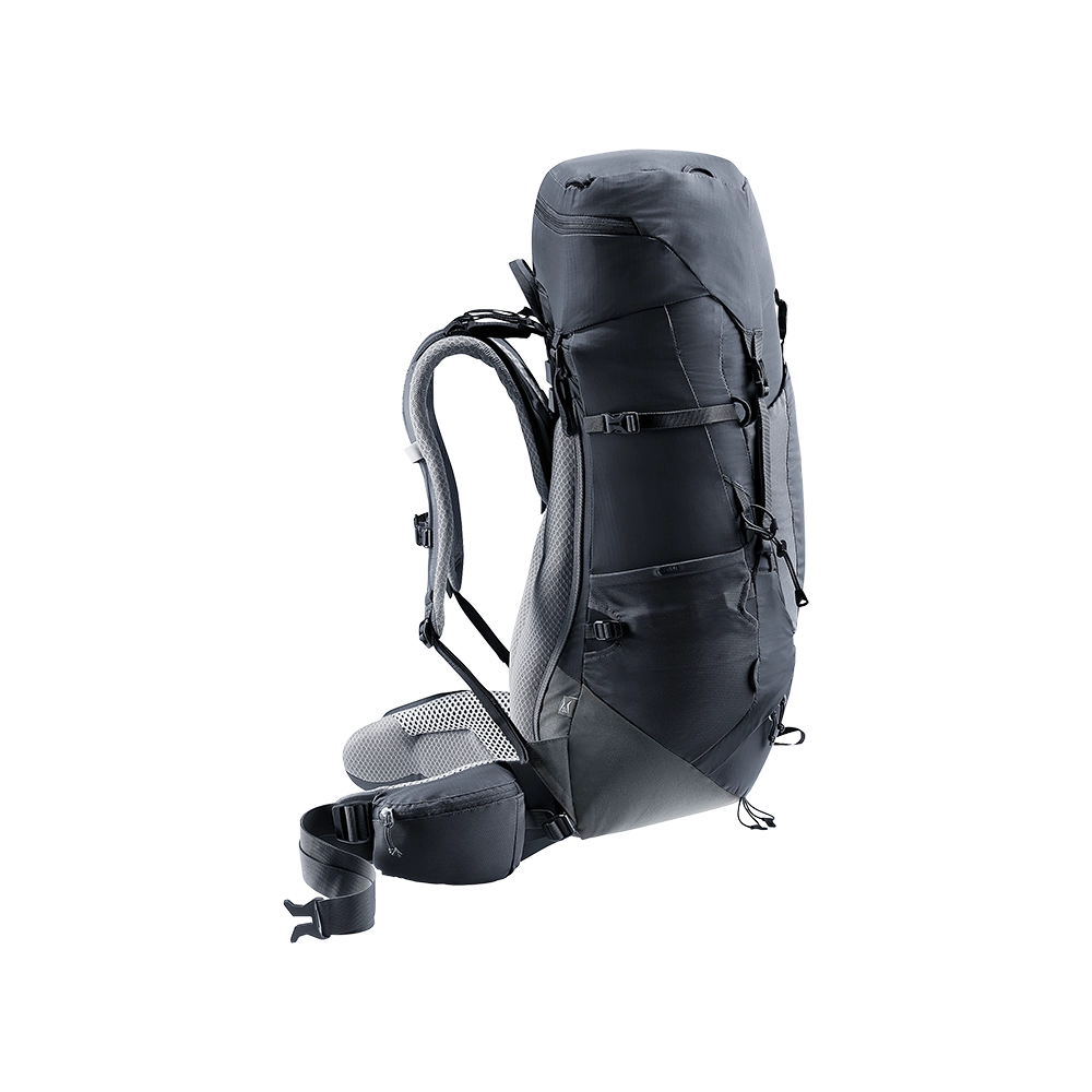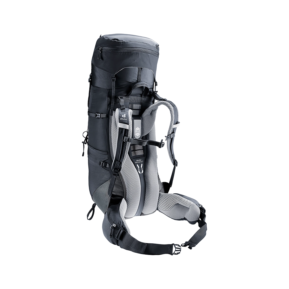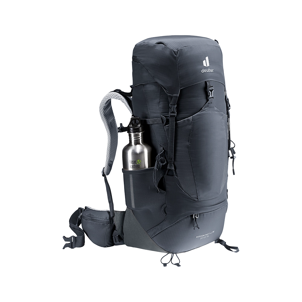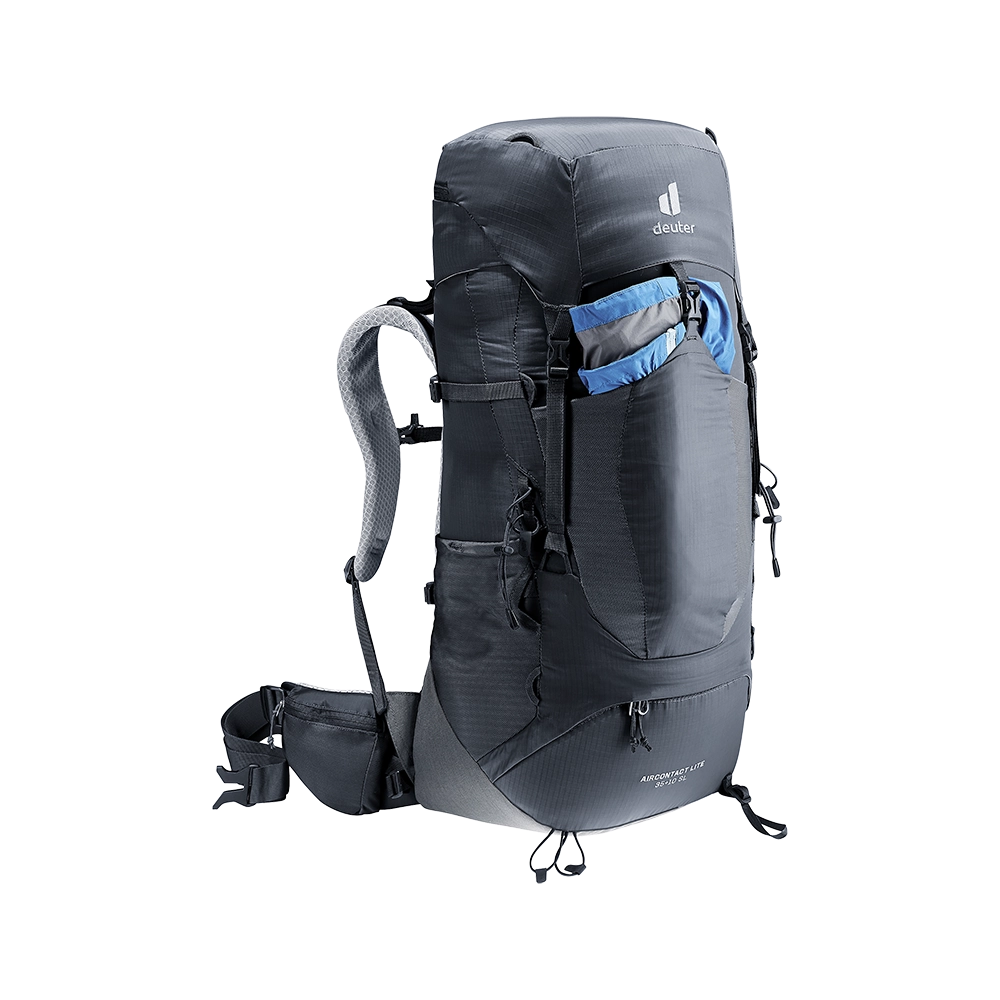 Aircontact Lite to następca znanego od wielu lat modelu ACT Lite, stanowi połączenie komfortu serii Aircontact z niską wagą serii ACT Lite. Model ten doskonale sprawdzi się podczas wypadów górskich i wyjazdów turystycznych. System nośny Aircontact Lite zapewnia komfort i wygodę nawet podczas długich, wielogodzinnych wędrówek. W tym modelu zastosowano system nośny Deuter Aircontact Lite, który składa się z dwóch rzędów poduszek wypełnionych pianką które zostały dodatkowo wydłużone ku górze, wykonane z bardziej zbitej pianki oraz pokryte nową siatką 3D AIRMESH. Szyny stelaża ułożono w kształcie litery X i taka konstrukcja pozwala na idealny balans ciężaru. Dzięki wąskiej budowie plecak bardzo dobrze sprawdza się podczas górskich wypraw. Zastosowany system Vari Quick umożliwia odpowiednie ustawienie plecaka do wzrostu. Dodatkowo wyposażenie poduszek pasa biodrowego w system ECL (Ergonomic Comfort Lock) umożliwia lepsze przenoszenie ciężaru i stabilizację plecaka na biodrach. Zastosowano system zapięcia pasa biodrowego poprzez ściągnięcie troków przed sobą, taki mechanizm wymaga od użytkowników zdecydowanie mniejszej siły przy zapięciu pasa oraz zdecydowanie poprawia precyzję jego dopasowania. Dodatkowo od frontu plecak posiada dużą elastyczną kieszeń, umożliwiającą schowanie kurtki, kasku lub mokrych rzeczy i szybsze tym samym ich wysuszenie. Wyposażony jest w 2 elastyczne kieszenie boczne, pętle do mocowania kijów trekkingowych i czekana. Na froncie znajduję się równie dodatkowe pętle do których możemy zamocować różne drobiazgi lub siatkę na kask. Na pasie biodrowym znajdują się 2 siatkowe kieszonki zapinane na suwak. Boczne pasy kompresyjne pozwalają zmniejszyć pojemność plecaka w trakcie przenoszenia mniejszych ładunków. Posiada 2 kieszenie zapinane na suwak w klapie oraz 2 komory dzielone suwakiem. Wewnątrz komory głównej posiada przegrodę na mokrą odzież lub system nawadniający. Dopełnieniem wszystkiego jest ruchomy pas piersiowy. Plecak jest kompatybilny z systemami nawadniającymi. Modele z symbolem SL (SL Women's Fit) skonstruowane są z myślą o kobietach które zazwyczaj mają krótsze plecy, dlatego plecaki z symbolem SL mają system nośny nieco krótszy niż standardowe.