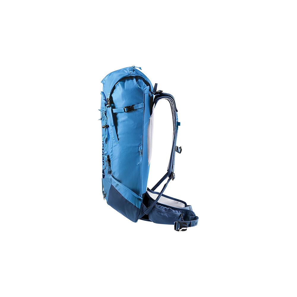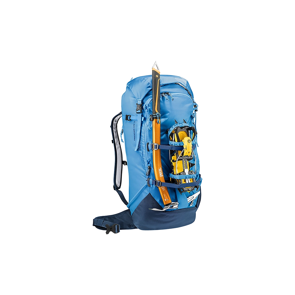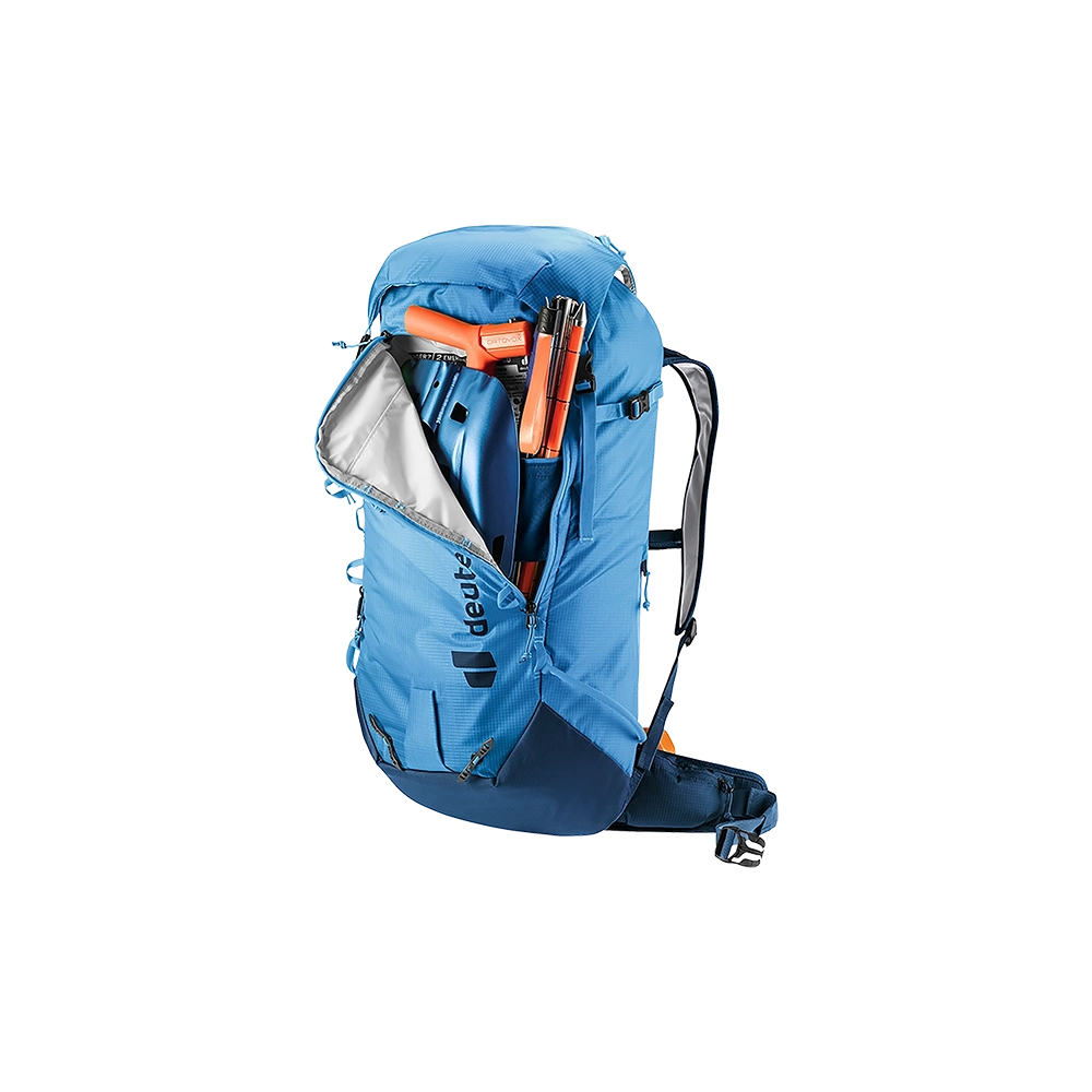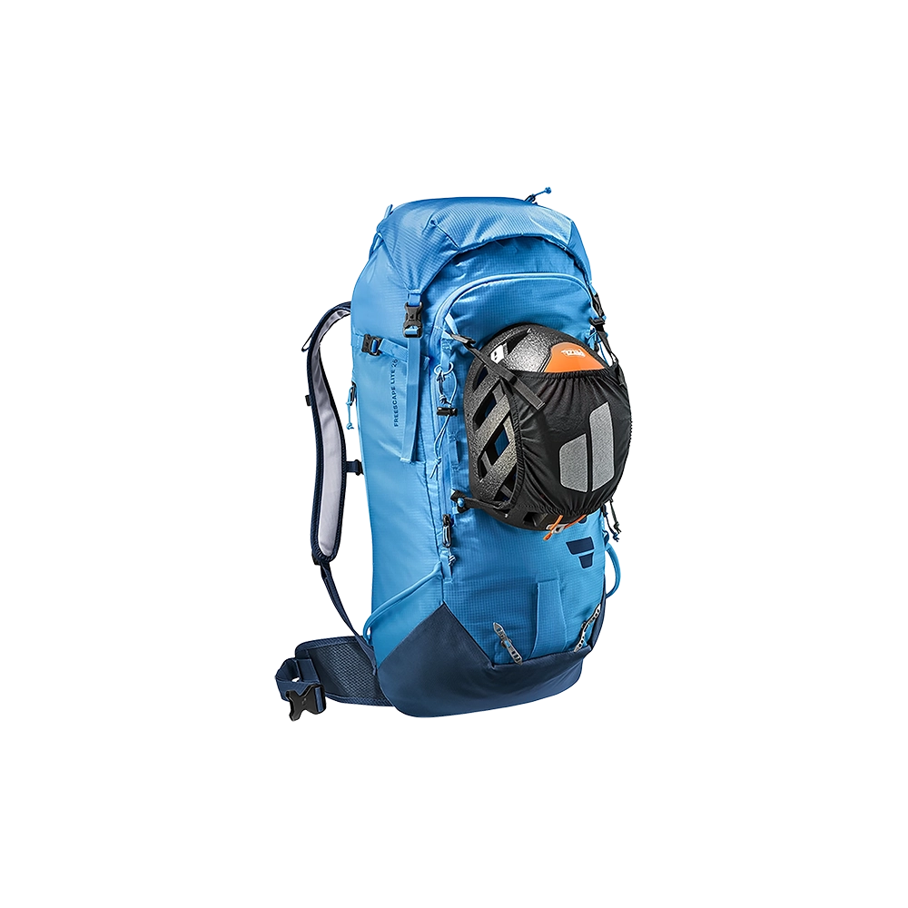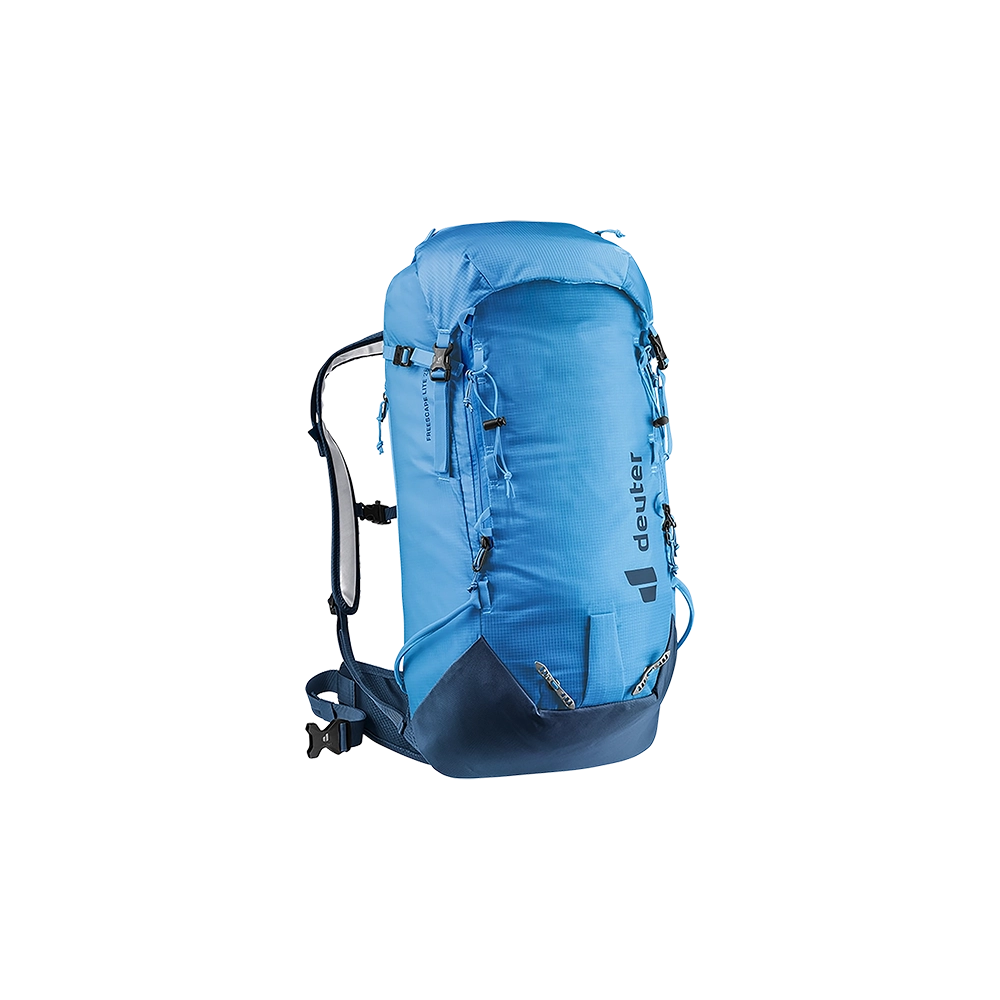 Model Deuter Freescape Lite 26 wykonano z wysokiej jakości materiału 630D PA /100D PA Ripstop. Dzięki temu jest niezwykle odporny na przetarcia i rozdarcia, zachowując niską wagę. Zwarta budowa z systemem Deuter Lite System, znakomicie utrzymuje plecak blisko środka ciężkości ciała. Szelki w anatomicznym kształcie, wraz z regulowanym pasem piersiowym, idealnie dopasowują się do ciała. Na pasie biodrowym znajduje się kieszonka zapinana na suwak. Dzięki wyposażeniu w dodatkowe troki posiada możliwość mocowania nart, deski, rakiet śnieżnych, raków, czekanu, kijów trekkingowych. Frontowa kieszeń jest łatwo dostępna i zabezpiecza zawartość. Przeznaczona jest ona do transportu lawinowego "ABC" W klapie znajduje kieszonka zapinana na suwak a w komorze głównej kieszeń wyściełana miękkim materiałem dedykowana do transportu gogli. Jest kompatybilny z systemem H2O. Dla poprawy bezpieczeństwa wyposażony jest w instrukcję SOS i gwizdek, zamontowany w pasie piersiowym. Na froncie plecaka znajduje się niewielka kieszeń na najpotrzebniejsze drobiazgi w której dodatkowo ukryta jest siatka na kask. Z drugiej natomiast strony nad pasem biodrowym znajduje się kieszonka na telefon komórkowy.