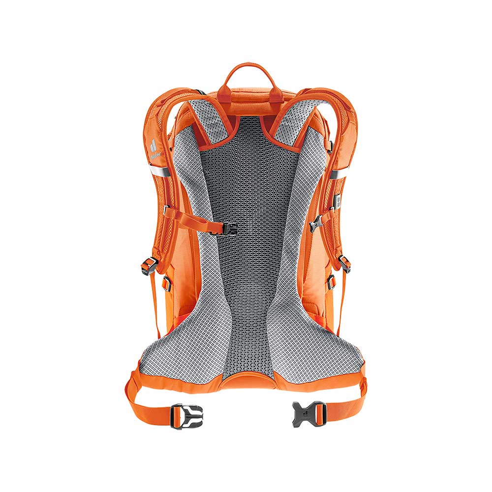 Wyposażono go w nowoczesny system nośny Aircomfort Sensic System, którego największym atutem jest wytrzymała siatka naciągnięta na dwa pręty. Dzięki takiemu rozwiązaniu między plecakiem a plecami użytkownika powstaje przestrzeń na wentylację. System nośny Aircomfort Sensic stał się połączeniem najwyższego poziomu wentylacji, ergonomicznego dopasowania oraz niskiej wagi. Boczne uchwyty umożliwiają dopięcie kijów lub czekana. Chowany pokrowiec przeciwdeszczowy zabezpieczy go w razie pogorszenia się warunków pogodowych. Główna komora, w przeciwieństwie do większych plecaków zamykana jest na zamek. Wewnątrz przedzielona jest za pomocą ściągacza na dwie części. Z przodu plecak wyposażono w wygodną dużą kieszeń z organizerem. Całkowicie na froncie znajduje się kieszeń wykonana z elastycznej siatki. Z obu stron plecaka znajdują się elastyczne kieszenie z siatki idealne do transportu butelek. Wyposażono go również z troki ściągające dzięki czemu możemy zmniejszyć pojemność plecaka a tym samym zabezpieczyć ładunek przed przemieszczaniem się wewnątrz. Na froncie znajdują się pętle do mocowania uchwytu na kask (uchwyt/siatka nie jest w zestawie). Kompatybilność z systemami nawodnienia daje możliwość zastosowania bukłaków o pojemności do 3 L.