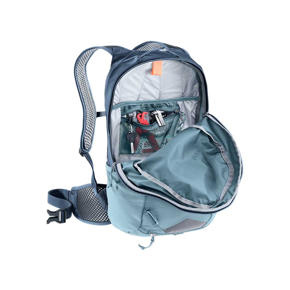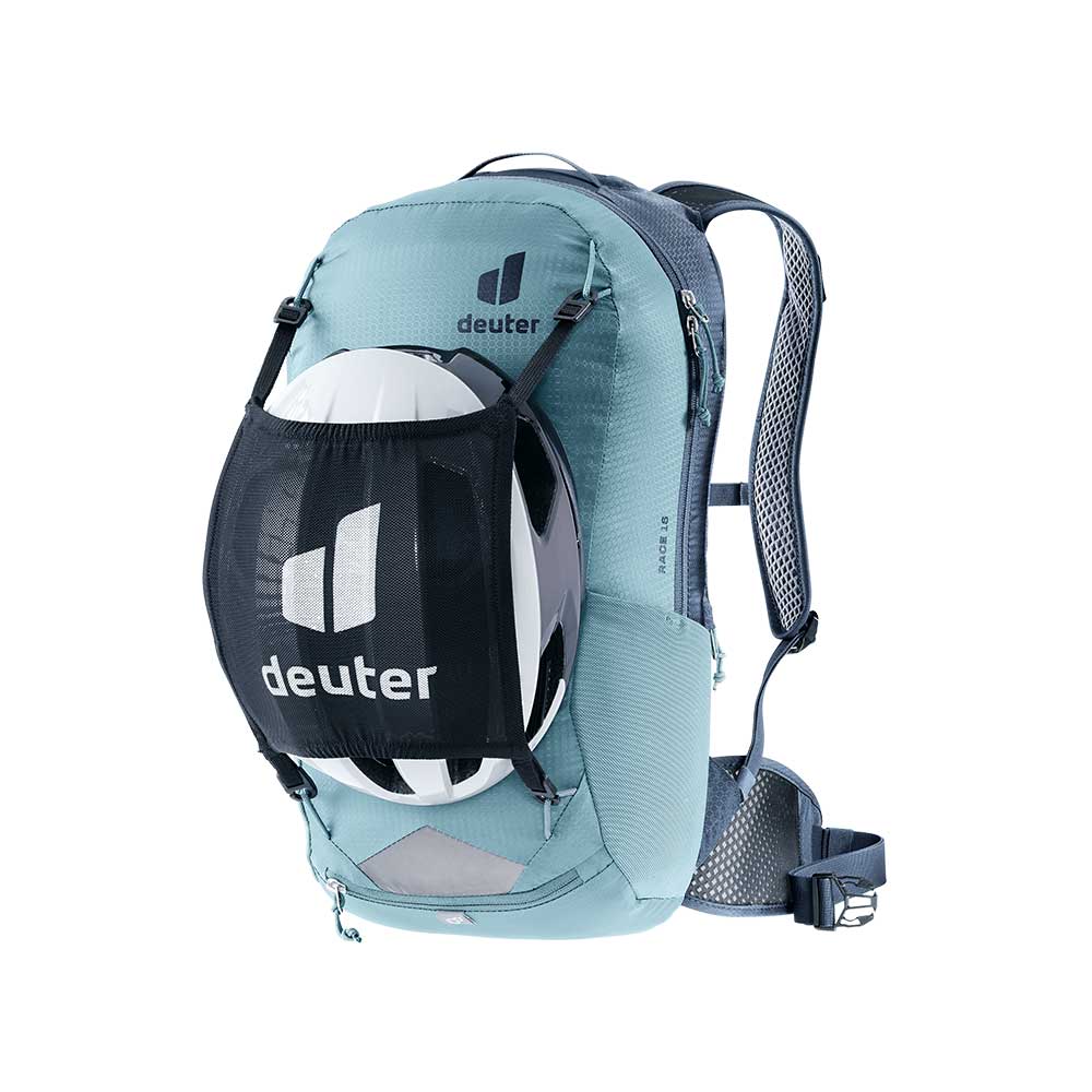 Deuter Race 16 to ulubiony model rowerzystów. Jego wszechstronne przeznaczenie wynika z bardzo niskiej wagi i kształtu, który nie krępuje ruchów. Wykonanie pasów nośnych i biodrowego z doskonale oprowadzającej gorące powietrze siatki pozwala na utrzymanie optymalnego klimatu skóry w czasie upałów. Plecak wyposażono również w pokrowiec przeciwdeszczowy - w kolorze żółtym. Jest on chowany w małej kieszeni na dole plecaka. Wysoką funkcjonalność Deuter Race 16 zawdzięcza wielu kieszonką. W komorze głównej znajduje się przegroda na bukłak oraz siatkowa kieszeń z zamkiem oraz uchwytem na klucze. Po obu stronach plecaka znajdują się elastyczne siatkowe kieszenie idealne na batony energetyczne. Na froncie znajdują się również uchwyty do mocowania siatki na kask (siatka nie jest częścią wyposażenia). Z jednej strony z boku znajduje się kieszeń zapinana na suwak, idealne miejsce na telefon komórkowy.