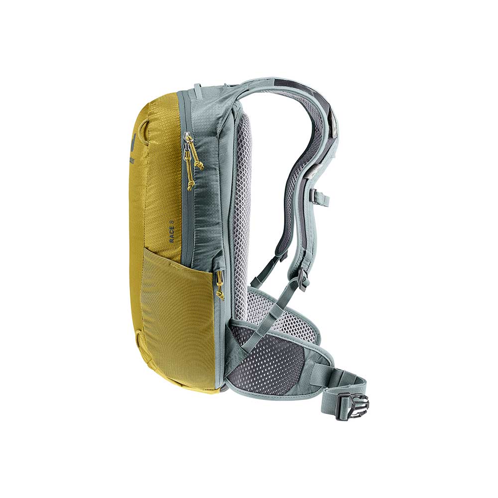 Deuter Race 8 to ulubiony model rowerzystów, a także biegaczy. Jego wszechstronne przeznaczenie wynika z bardzo niskiej wagi i kształtu, który nie krępuje ruchów. Wykonanie pasów nośnych i biodrowego z doskonale oprowadzającej gorące powietrze siatki pozwala na utrzymanie optymalnego klimatu skóry w czasie upałów. Plecak wyposażono również w pokrowiec przeciwdeszczowy - w kolorze żółtym. Jest on chowany w małej kieszeni na dole plecaka. Wysoką funkcjonalność Deuter Race 8 zawdzięcza wielu kieszonką. W komorze głównej znajduje się przegroda na bukłak oraz siatkowa kieszeń z zamkiem oraz uchwytem na klucze. Po obu stronach plecaka znajdują się elastyczne siatkowe kieszenie idealne na batony energetyczne. Na froncie znajdują się również uchwyty do mocowania siatki na kask (siatka nie jest częścią wyposażenia). Z jednej strony z boku znajduje się kieszeń zapinana na suwak, idealne miejsce na telefon komórkowy.