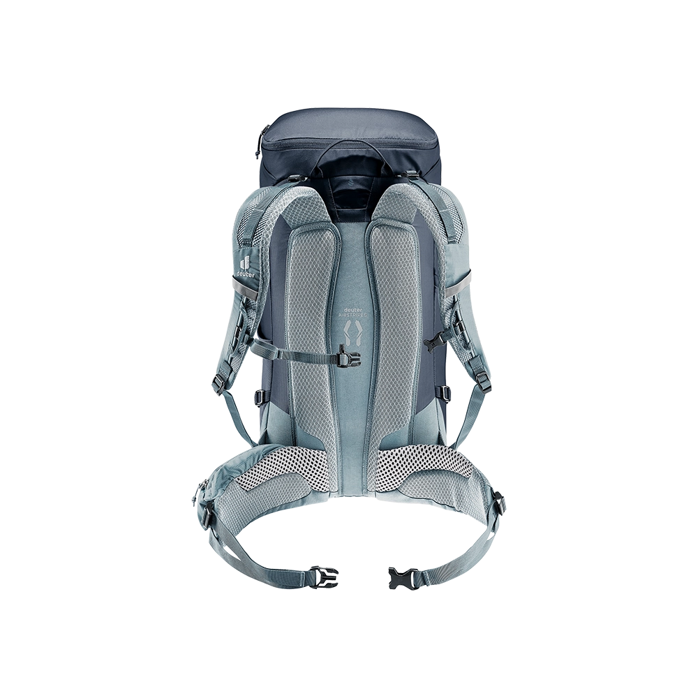 System nośny Deuter Airstripes stanowią dwa rzędy poduszek wypełnionych otwarto-komorową pianką pokrytą od zewnątrz oddychającą siatką Wide AirMesh. Rozwiązanie to zapewnia dobre przyleganie plecaka do pleców oraz zachowuje odpowiedni stopień wentylacji. System nośny dodatkowo napina elastyczny pręt Delrin® pozwalający nosić większe ładunki bez zniekształcenia plecaka. Utrzymuje on plecak bliżej pleców i zapewnia lepsze przenoszenie ciężaru. Elastyczne szelki dopasowują się idealnie do każdej sylwetki. Posiadają płynnie regulowany pas piersiowy z gwizdkiem, paski regulujące położenie ładunku, elastyczne pętle na rurkę od bukłaka oraz szpejarki. Anatomiczny pas biodrowy posiada nowy sposób regulacji Pull-Forward, poprzez ściągnięcie obu troków przed sobą (taki mechanizm regulacji pasa wymaga zdecydowanie mniej siły przy ściąganiu troków oraz zapewnia precyzyjniejsze dopasowanie go do bioder). Pas biodrowy jest bardzo obszerny i odpowiednio wyprofilowany co zapewnia wysoki komfort i doskonale przenosi obciążenie na biodra. Na pasie znajdują się również kieszeń zapinana na suwak.