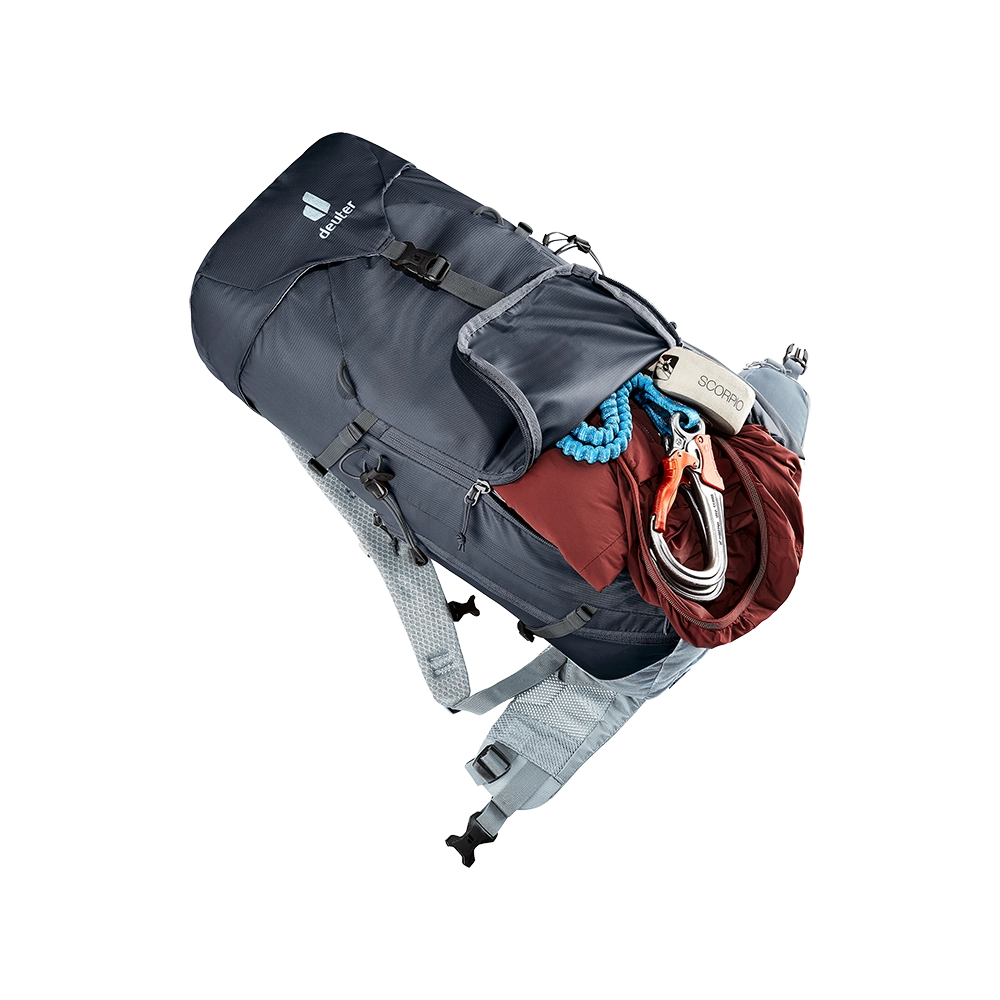 Posiada jedną komorę, do której dostęp możliwy jest od strony komina lub od frontu za pomocą dwukierunkowego suwaka. Posiada dużą ilość kieszeni pozwalających właściwie segregować bagaż. Po bokach z jednej strony znajduje się kieszeń zapinana na suwak a z drugiej elastyczna kieszeń z siatki. Z frontu znajdują się pętelki do montażu siatki na kask (siatka nie jest w zestawie). Plecak oferuje również możliwość mocowania kijów trekkingowych oraz czekana. W klapie znajdziemy 2 kieszenie zapinane na suwak wewnętrzną oraz zewnętrzną z uchwytem na klucze. Boczne pasy kompresyjne umożliwiają zmniejszenie pojemności jeżeli istnieje taka potrzeba. Komora główna kompatybilna jest z systemami H2O, posiada przegrodę na umieszczenie bukłaka lub na mokrą odzież. Zamykana jest szybkim w obsłudze ściągaczem.