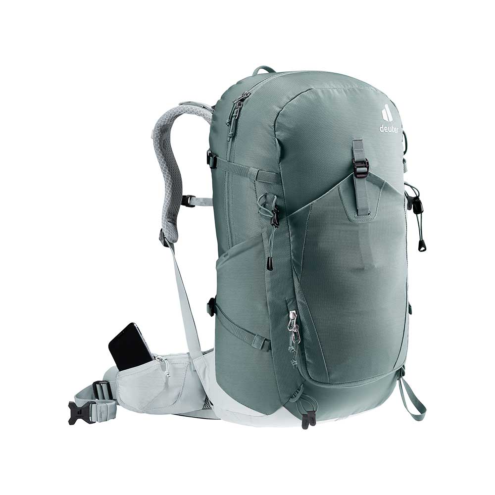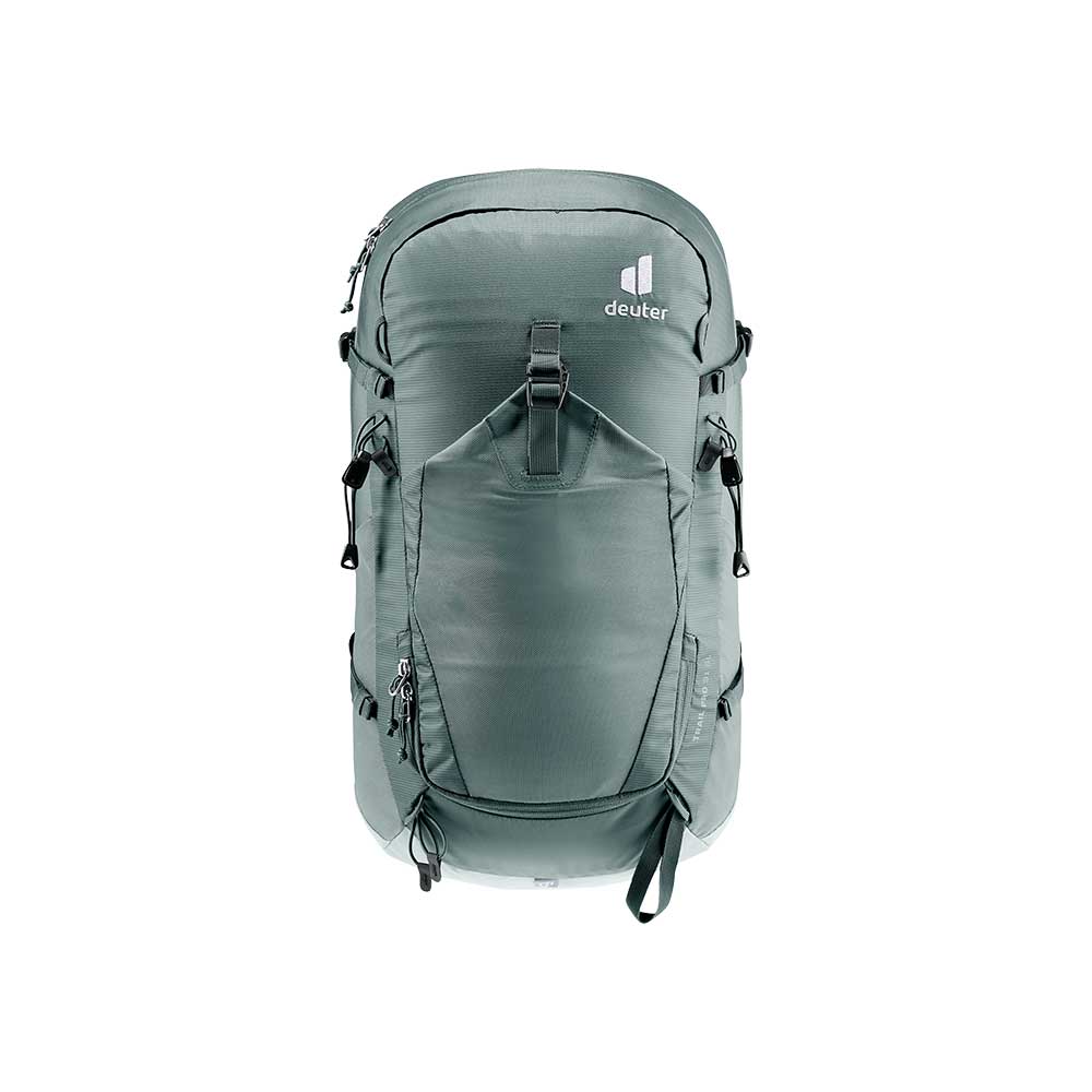 Plecak Deuter Trail Pro 31 SL to idealny towarzysz na kilkudniowe wypady w góry. Modele z symbolem SL zaprojektowane są specjalnie pod kobiecą sylwetkę. Posiada jedną komorę, do której dostęp możliwy jest od góry oraz od dołu za pomocą dwukierunkowego suwaka. Komora jest dzielona przegrodą zapinaną na suwak dzięki czemu łatwiej segregować ekwipunek. Posiada dużo kieszeni pozwalających właściwie segregować bagaż. Po obu bokach znajdują się elastyczne kieszenie z siatki. Z frontu znajduje się kieszeń przeznaczona do transportu kasku lub np. bluzy czy też kurtki. Plecak oferuje również możliwość mocowania kijów trekkingowych oraz czekana. Na szczycie znajduje się mała kieszeń z uchwytem na klucze. Boczne pasy kompresyjne umożliwiają zmniejszenie pojemności jeżeli istnieje taka potrzeba. Komora główna kompatybilna jest z systemami H2O, posiada przegrodę na umieszczenie bukłaka lub na mokrą odzież oraz małą siatkową kieszonkę zapinana na suwak.