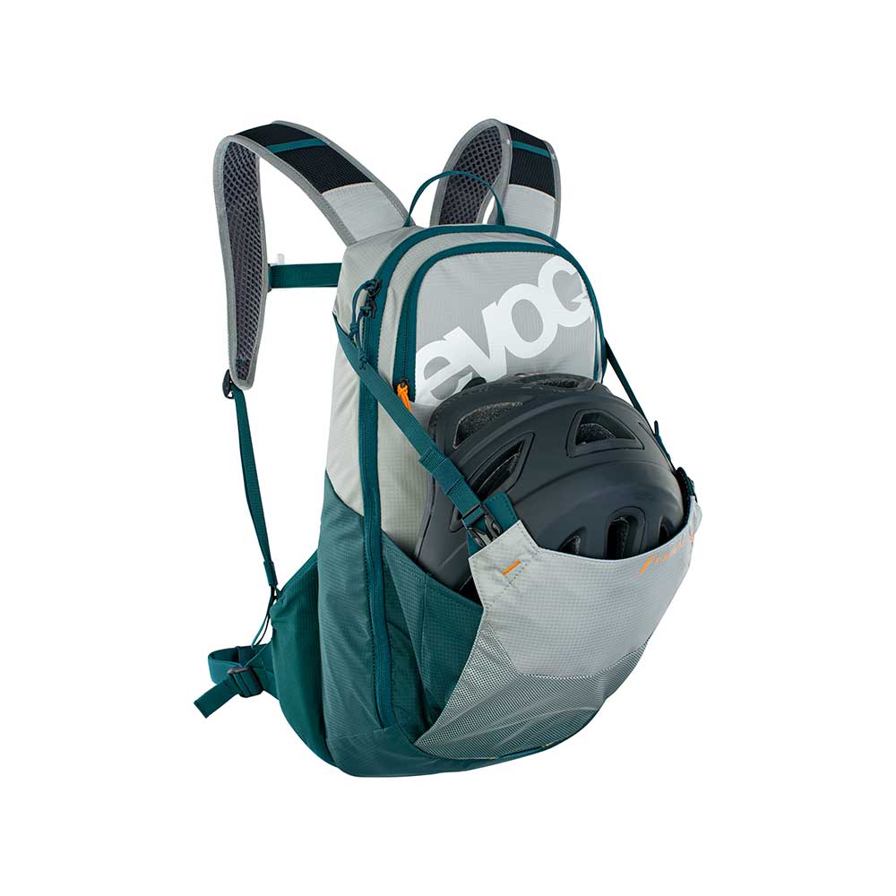 Evoc E-Ride 12 L jest bardzo uniwersalny, sprawdzi się w trakcie jazdy na rowerze, wyjścia w góry a nawet w trakcie codziennego użytku w mieści. Jego głównym atutem jest bardzo niska waga. Od frontu znajduje się kieszeń na kask oraz mała kieszonka np. na okulary. W komorze głównej znajduje się organizer składający się z dwóch kieszeni zapinanych na suwak (jedna z siatki, druga pełna z miękkim wykończeniem dedykowana na display) oraz 2 siatkowych przegródek. Na dnie komory znajduje się specjalny uchwyt na ładowarkę. Dodatkowo komora główna wyposażona jest w przegrodę dedykowaną na bukłak. System Air Pad oparty jest na wyprofilowanych poduszkach dystansujących co pozwala na ruch powietrza między nimi w trakcie użytkowania. Pas piersiowy jest ruchomy i wyposażony w gwizdek, pas biodrowy natomiast posiada 2 elastyczne kieszonki z siatki np. na batony energetyczne.