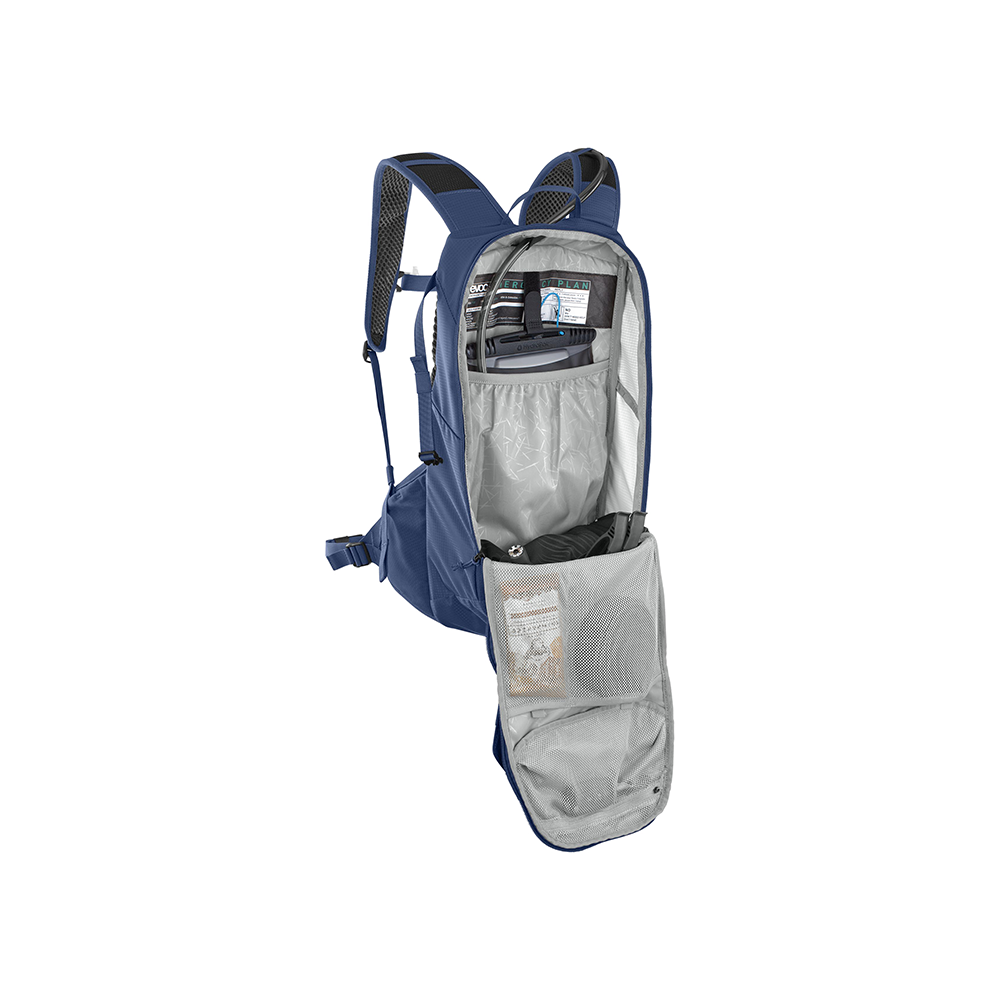 Evoc Ride 12 L jest bardzo uniwersalny, sprawdzi się w trakcie jazdy na rowerze, wyjścia w góry a nawet w trakcie codziennego użytku w mieści. Jego głównym atutem jest bardzo niska waga. Od frontu znajduje się kieszeń na kask oraz mała kieszonka np. na okulary. W komorze głównej znajduje się organizer składający się z dwóch siatkowych kieszeni zapinanych na suwak oraz 2 siatkowych przegródek. Dodatkowo komora główna wyposażona jest w przegrodę dedykowaną na bukłak. System Air Pad oparty jest na wyprofilowanych poduszkach dystansujących co pozwala na ruch powietrza między nimi w trakcie użytkowania. Pas piersiowy jest ruchomy i wyposażony w gwizdek, pas biodrowy natomiast posiada 2 elastyczne kieszonki z siatki np. na batony energetyczne.