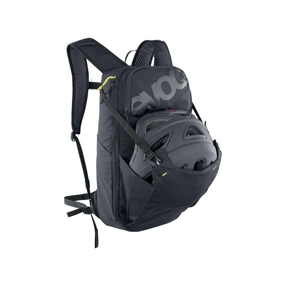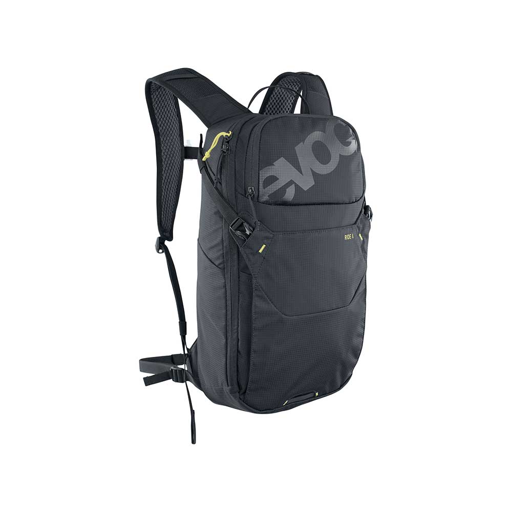Evoc Ride 8 L jest bardzo uniwersalny, sprawdzi się w trakcie jazdy na rowerze, wyjścia w góry a nawet w trakcie codziennego użytku w mieści.Jego głównym atutem jest bardzo niska waga. Od frontu znajduje się kieszeń na kask oraz mała kieszonka np. na okulary. W komorze głównej znajduje się organizer składający się z dwóch siatkowych kieszeni zapinanych na suwak oraz 2 siatkowych przegródek. Dodatkowo komora główna wyposażona jest w przegrodę dedykowaną na bukłak. System Air Pad oparty jest na wyprofilowanych poduszkach dystansujących co pozwala na ruch powietrza między nimi w trakcie użytkowania. Pas piersiowy jest ruchomy i wyposażony w gwizdek, natomiast pas biodrowy można zdemontować jeżeli nie jest on nam potrzebny.