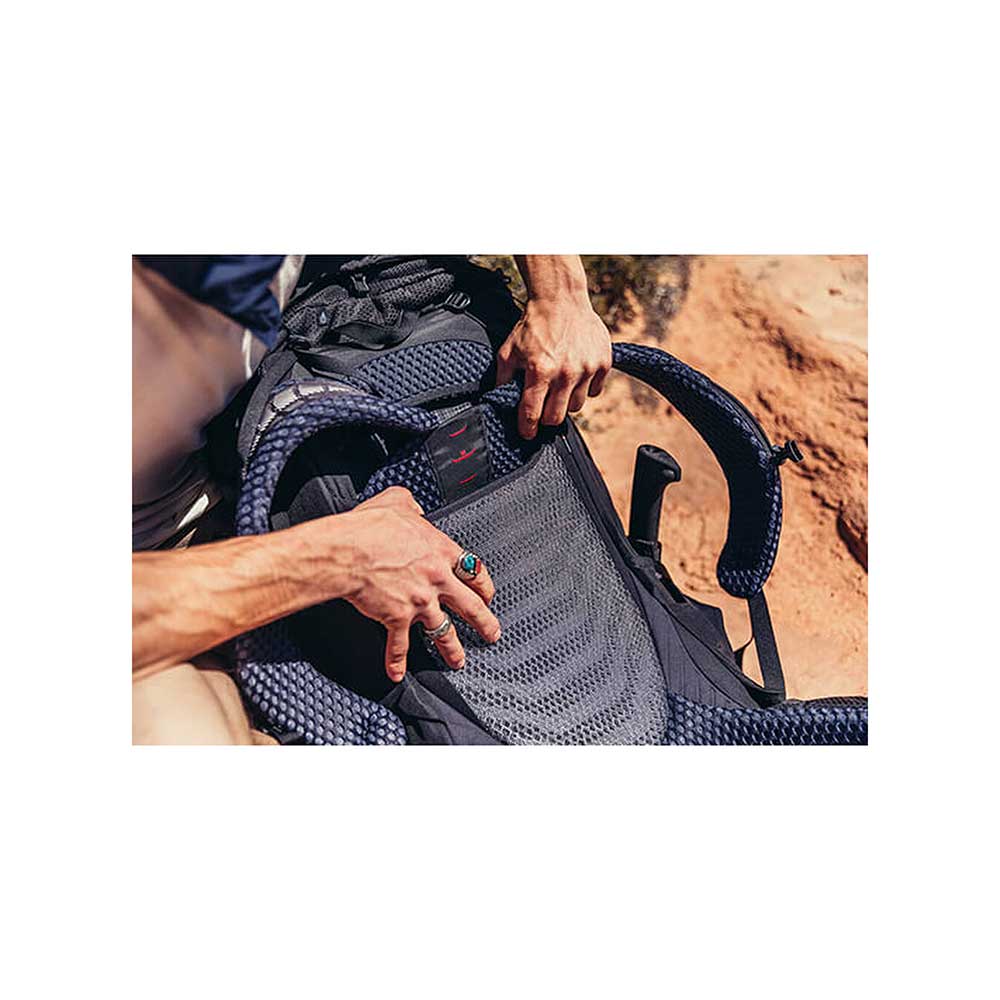 Gregory Baltoro Pro to wzmocniona wersja modelu Baltoro. Zastosowano tu grubszy stelaż oraz poszerzony i wzmocniony pas biodrowy. Dzięki czemu model ten jest przeznaczony do transportu największych ładunków. Największą zaletą tego modelu jest jego system nośny FreeFloat A3. Konstrukcja oparta jest na ramie oraz perforowanej piance opiętej siatką. Rozwiązanie to gwarantuje dobre dopasowanie plecaka do pleców na całej długości przy zachowaniu odpowiedniego stopnia odprowadzania wilgoci. Dodatkowo system ten oferuje możliwość regulacji wysokości położenia pasów nośnych względem pasa biodrowego. Odbywa się to za pomocą przepinania panelu wyposażonego w wytrzymały rzep. Rozwiązanie to pozwala doskonale dopasować plecak do wzrostu i budowy użytkownika. Wykonany został z bardzo lekkich a zarazem wytrzymałych materiałów 210D High Density 40% Recycled Nylon With Pfc-free Dwr & 420D High Density 45% Recycled Nylon With Pfc-free Dwr oraz 630D High Density Nylon with PFC-Free DWR. Od frontu znajduje się elastyczna kieszeń wykonana z siatki. Po obu stronach znajdują się kieszonki jedna wykonana z siatki a druga z materiału dedykowana jest ona do transportu butelki z wodą. Plecak posiada komorę główną z przegrodą na bukłak lub mokrą odzież (bukłak nie wchodzi w skład zestawu). Komora główna zamykana jest klapą, znajdują się w niej 3 kieszenie zapinane na suwak (dwie zewnętrzne i wewnętrzna). Dodatkowo w wewnętrznej kieszeni ukryty jest pokrowiec przeciwdeszczowy. Dostęp do komory głównej możliwy jest od góry po odpięciu klapy, od frontu za pośrednictwem suwaka w kształcie litery "U" oraz od spodu. Komora główna ma możliwość jej przedzielenia kawałkiem materiału z zaczepami. Od frontu po bokach frontowej kieszeni z siatki znajdują się dwie duże kieszenie zapinane na suwak. Szelki są wentylowane i pokryte perforowanym materiałem. Na szelkach dodatkowo znajdują się paski do montażu rurki od bukłaka lub do troczenia dodatkowego sprzętu oraz specjalnie zaprojektowany uchwyt na okulary. Plecak posiada płynnie regulowany pas piersiowy z wbudowanym gwizdkiem oraz pas biodrowy zintegrowany z konstrukcją systemy nośnego. Zapewnia to doskonałe dopasowanie do bioder oraz odpowiednie przenoszenie obciążeń. Dla poprawy komfortu użytkowania pas biodrowy posiada regulację długości części wyściełanej materiałem. Odbywa się to poprzez odpięcie ukrytych rzepów i wysunięcie lub schowanie ruchomego elementu pasa. Na pasie biodrowym znajdują się dwie kieszonki zapinane na suwak. Boczne troki kompresyjne pozwalają na zmniejszenie pojemności plecaka lub lepszą stabilizację przewożonego ładunku. Dodatkowo model ten umożliwia mocowanie kijów trekkingowych i czekana oraz wyposażony jest w wygodny uchwyt do przenoszenia. Na klapie znajdują się pętle do troczenia dodatkowego ekwipunku a przy dnie dwa troki pozwalające przymocować np. karimatę.