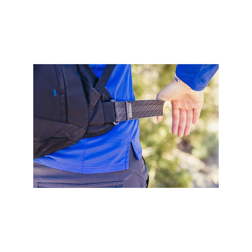 - Funkcjonalność na pierwszym miejscu – mocowanie kijów trekkingowych, gwizdek alarmowy w pasie piersiowym i elastyczny pas biodrowy.