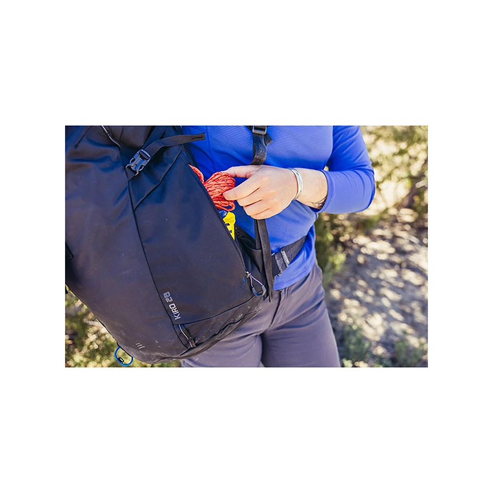 - Komfort i organizacja – komora główna z miejscem na bukłak lub mokrą odzież, boczne kieszenie na butelkę i drobiazgi