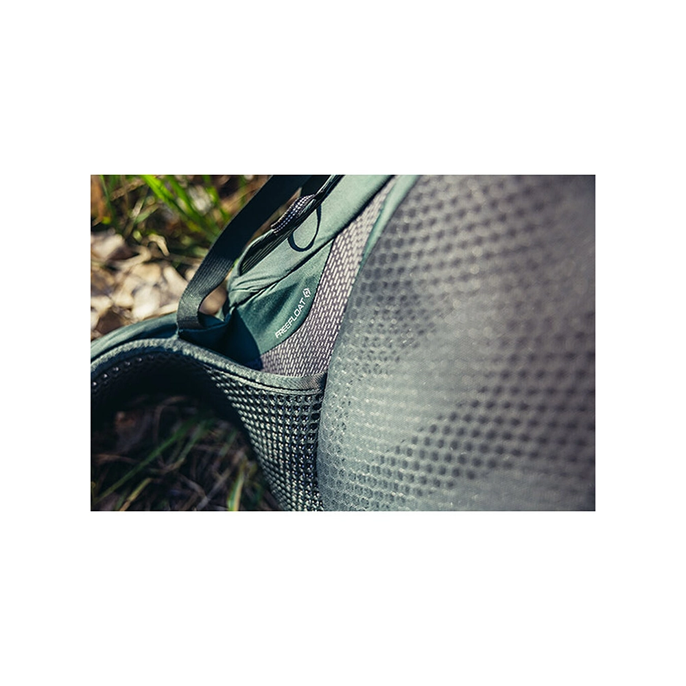 Największą zaletą tego modelu jest jego system nośny FreeFloat. Konstrukcja oparta jest na ramie oraz perforowanej piance opiętej siatką. Rozwiązanie to gwarantuje dobre dopasowanie plecaka do pleców na całej długości przy zachowaniu odpowiedniego stopnia odprowadzania wilgoci. Dodatkowo system ten oferuje możliwość regulacji wysokości położenia pasów nośnych względem pasa biodrowego. Odbywa się to za pomocą przepinania panelu wyposażonego w wytrzymały rzep. Rozwiązanie to pozwala doskonale dopasować plecak do wzrostu i budowy użytkownika. Wykonany został z bardzo lekkich a zarazem wytrzymałych materiałów 100D High Density Nylon & 210D High Density Nylon. Od frontu znajduje się elastyczna kieszeń wykonana z siatki. Po obu stronach znajdują się obszerne siateczkowe kieszonki w sam raz do transportu butelek z wodą. Jedna z nich umożliwia także boczny dostęp do zawartości. Plecak posiada komorę główną z przegrodą na bukłak lub mokrą odzież (bukłak nie wchodzi w skład zestawu). Komora główna zamykana jest klapą, znajdują się w niej 2 kieszenie zapinane na suwak (zewnętrzna i wewnętrzna). Dodatkowo w wewnętrznej kieszeni ukryty jest pokrowiec przeciwdeszczowy. Dostęp do komory głównej możliwy jest od góry po odpięciu klapy oraz od spodu. Szelki są wentylowane i pokryte perforowanym materiałem. Na szelkach dodatkowo znajdują się paski do montażu rurki od bukłaka lub do troczenia dodatkowego sprzętu oraz specjalnie zaprojektowana elastyczna kieszonka z siatki. Plecak posiada płynnie regulowany pas piersiowy z wbudowanym gwizdkiem oraz pas biodrowy zintegrowany z konstrukcją systemy nośnego. Zapewnia to doskonałe dopasowanie do bioder oraz odpowiednie przenoszenie obciążeń. Na pasie biodrowym znajdują się dwie kieszonki zapinane na suwak. Boczne troki kompresyjne pozwalają na zmniejszenie pojemności plecaka lub lepszą stabilizację przewożonego ładunku. Dodatkowo model ten umożliwia mocowanie kijów trekkingowych oraz wyposażony jest w wygodny uchwyt do przenoszenia. Na klapie znajdują się pętle do troczenia dodatkowego ekwipunku a przy dnie dwa troki pozwalające przymocować np. karimatę.