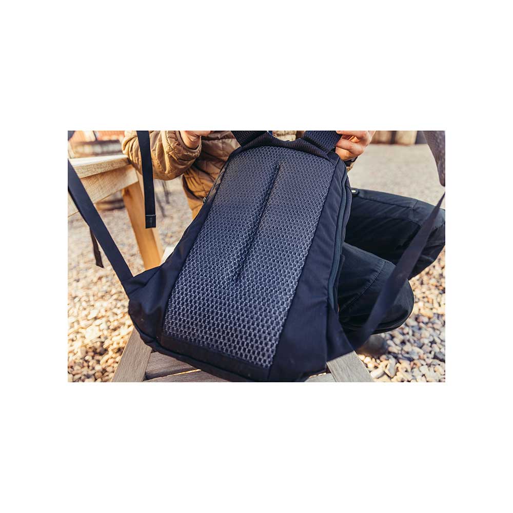 Wykonany został z materiałów pochodzących z recyclingu. Konstrukcja tego modelu oparta jest na usztywnionych plecach i dużym panelu z perforowanej pianki opiętym siatką. Rozwiązanie takie zapewnia odpowiednią wygodę i zabezpiecza dodatkowo transportowany ładunek przed uszkodzeniem.