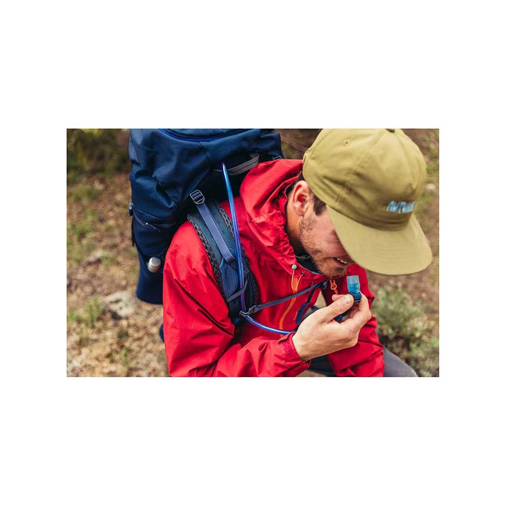 Największą zaletą tego modelu jest jego system nośny FreeFloat. Konstrukcja oparta jest na odpowiednio wygiętej ramie oraz napiętej na niej siatce. Rozwiązanie to gwarantuje doskonałą wentylację pleców oraz szybkie ich wysychanie nawet po dużym wysiłku. Dodatkowo system ten oferuje możliwość regulacji wysokości położenia pasów nośnych względem pasa biodrowego (zakres regulacji: 9 cm). Odbywa się to za pomocą przepinania panelu wyposażonego w wytrzymały rzep. Rozwiązanie to pozwala doskonale dopasować plecak do wzrostu i budowy użytkownika. Wykonany został z bardzo lekkich a zarazem wytrzymałych materiałów 40% Recycled 400D Polyester Ripstop with PFC-Free DWR oraz 420D NYLON WITH PFC-FREE DWR. Od frontu znajduje się elastyczna kieszeń wykonana z połączenia wytrzymałej siatki i materiału. Po obu stronach znajdują się siateczkowe kieszonki w sam raz do transportu butelek z wodą. Plecak posiada komorę główną z przegrodą na bukłak lub mokrą odzież (bukłak nie wchodzi w skład zestawu). Komora główna zamykana jest klapą, znajdują się w niej 2 kieszenie zapinane na suwak (zewnętrzna i wewnętrzna). Dodatkowo w wewnętrznej kieszeni ukryty jest pokrowiec przeciwdeszczowy. Dostęp do komory głównej możliwy jest od góry po odpięciu klapy oraz od frontu za pośrednictwem wszytego suwaka w kształcie litery "U". Szelki są wentylowane i pokryte perforowanym materiałem. Na szelkach dodatkowo znajdują się paski do montażu rurki od bukłaka lub do troczenia dodatkowego sprzętu. Plecak posiada płynnie regulowany pas piersiowy z wbudowanym gwizdkiem oraz pas biodrowy zintegrowany z konstrukcją systemy nośnego. Zapewnia to doskonałe dopasowanie do bioder oraz odpowiednie przenoszenie obciążeń. Na pasie biodrowym znajdują się dwie kieszonki zapinane na suwak. Boczne troki kompresyjne pozwalają na zmniejszenie pojemności plecaka lub lepszą stabilizację przewożonego ładunku. Dodatkowo model ten umożliwia mocowanie kijów trekkingowych oraz wyposażony jest w wygodny uchwyt do przenoszenia.