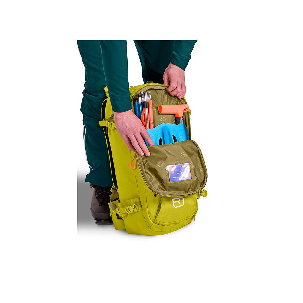 Ortovox Haute Route 32 w nowej odsłonie jest znacznie lżejszy niż poprzednio dzięki zastosowaniu poliamidu 420D Oxford PFC Free. Dzięki zastosowaniu tego materiału plecak jest obecnie jeszcze bardziej odporny na przetarcia. Zastosowany system nośny O-Flex-2-Frame rozkłada obciążenia równomiernie na biodra i ramiona zapewniając wyjątkowy komfort noszenia. Najistotniejszą zaletą tego modelu jest dostęp do głównej komory od tyłu lub od góry. Wyposażony jest w wiele ważnych funkcji takich, kompatybilność z systemami nawodnienia, możliwość mocowania nart lub snowboardu, czekanu a także liny. Dodatkowo posiada kieszeń dedykowaną na sondę oraz łopatę śnieżną. Na szczycie plecaka znajduje się kieszeń idealna do przenoszenia gogli. W komorze głównej znajduje się dodatkowa kieszonka zapinana na suwak idealna na najcenniejsze drobiazgi. W górnej części od frontu znajduje się głęboka kieszeń z uchwytem na klucze. Po bokach znajdują się troki służące do kompresji plecaka jak również do mocowania nart. Plecak posiada również uchwyt na kask, klucze oraz wbudowany gwizdek w klamrę pasa piersiowego. Obszerny pas biodrowy zapewnia komfort noszenia oraz posiada 1 kieszonkę zapinana na suwak.