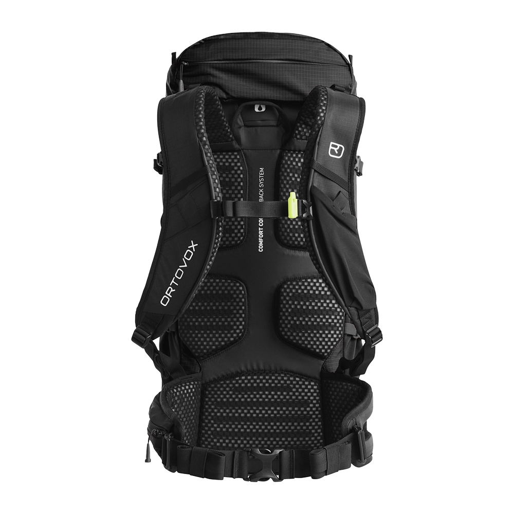 Ergonomicznie ukształtowane szelki i szeroki pas biodrowy zapewniają równomierne rozłożenie ciężaru. Dzięki dużej komorze głównej oraz kilku dodatkowym kieszeniom, ten plecak oferuje mnóstwo miejsca do przechowywania sprzętu. Do głównej komory można się dostać korzystając z suwaka wszytego po obwodzie od frontu plecaka a także za pomocą górnej klapy. Dzięki wszytemu suwakowi po obwodzie można praktycznie rozłożyć plecak na "płasko", otrzymując w ten sposób pełen dostęp do zawartości komory głównej. W komorze głównej znajduje się niewielka kieszeń zapinana na suwak na najpotrzebniejsze drobiazgi. Butelkę z wodą możemy schować do jednej z 2 bocznych kieszeni. Posiada dodatkową komorę z dostępem tylko od dołu. Plecak ten oferuje ponadto pokrowiec przeciwdeszczowy, mocowanie kijów trekkingowych, kompatybilność z systemami nawodnienia, kieszonkę na pasie biodrowym oraz siatkę na kask ukrytą w małej kieszonce. Wewnątrz znajdziemy również Emergency card z obrazkową instrukcje SOS. Na szelkach znajdują się uchwyt na okulary oraz mała elastyczna kieszonka. Pas piersiowy jest płynnie regulowany i posiada zintegrowany gwizdek. W klapie znajdują się 2 kieszenie zapinane na suwak (wewnętrzna i zewnętrzna). Na froncie znajduje się duża elastyczna kieszeń idealne miejsce np. do transportu kurtki.