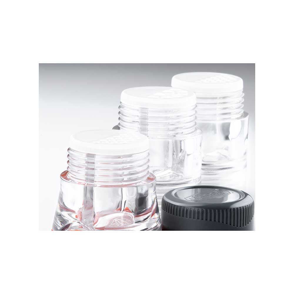 Całość składa się z 3 pojemników. Każdy pojemniczek podzielony jest na dwie komory, w przyprawniku można więc przechowywać aż 6 różnych przypraw, a dozowniki o małych i większych otworach zapewniają odmierzenie idealnej ilości każdej z nich.