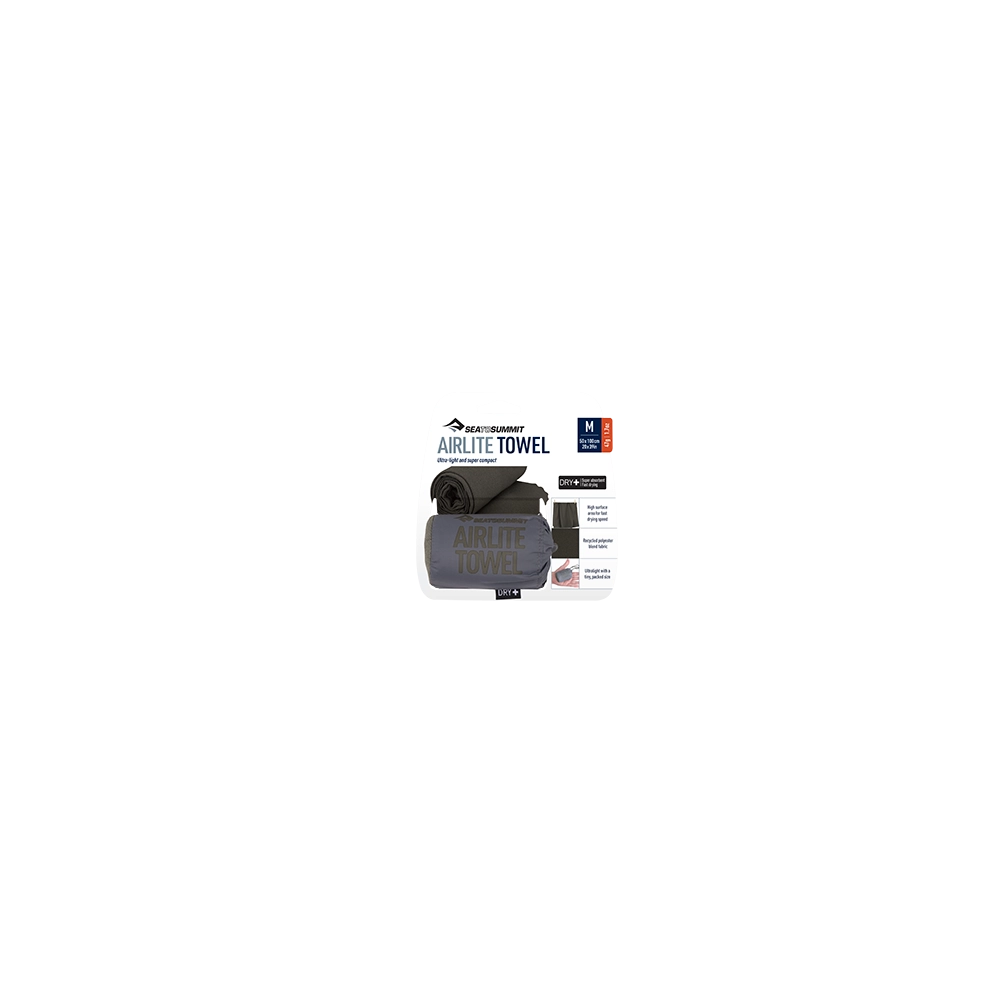 Ręcznik Sea To Summit Airlite jest ultralekki i ultra kompaktowy zaprojektowany specjalnie z myślą o minimalistach. Wykonany został z mikrowłókna umożliwiającego absorbowanie wody w ilości trzykrotnie większej od jego wagi. Krawędzie ręcznika cięte są za pomocą lasera dzięki czemu nie ma konieczności stosowania wykończenia overlock co pozwoliło zmniejszyć rozmiary po spakowaniu oraz jego wagę. Ręcznik wyposażony jest w woreczek transportowy. Przed pierwszym użyciem ręcznik należy wyprać.