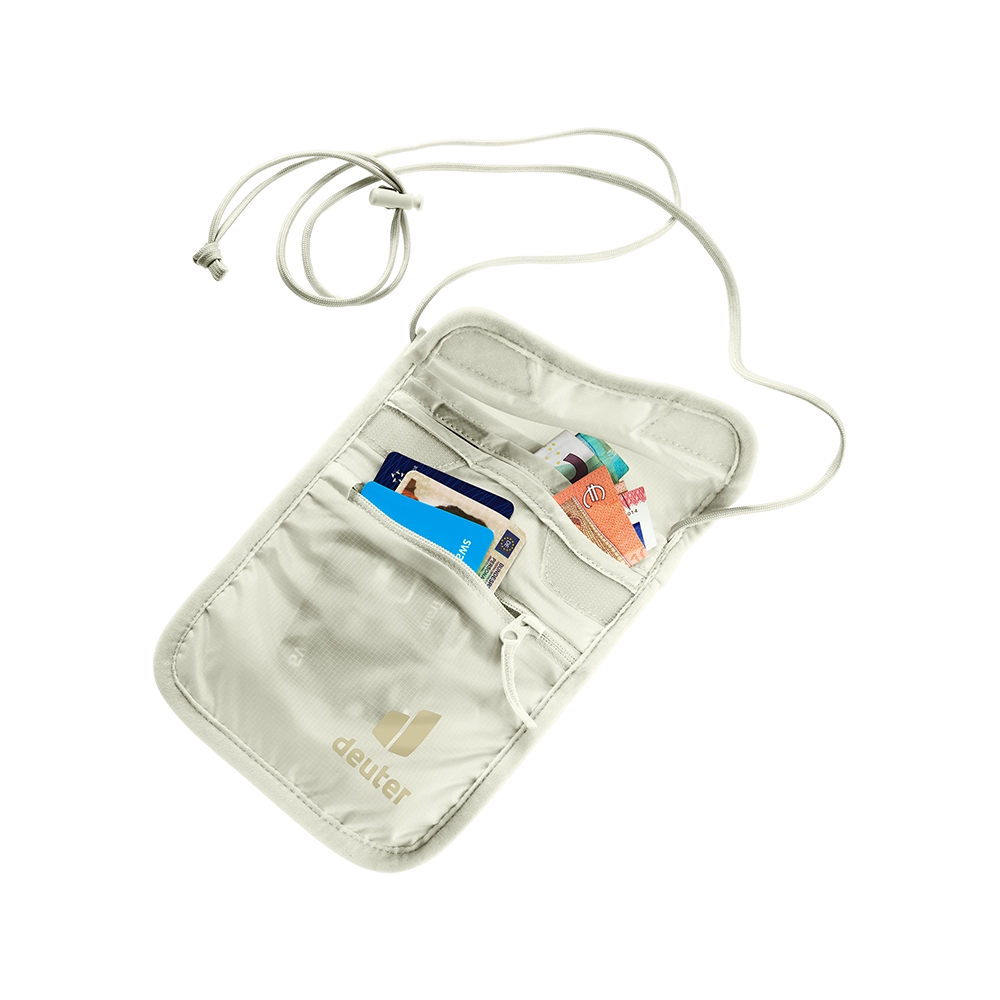 Deuter Security Wallet II to dyskretna saszetka zawieszana na szyję, przeznaczona do przechowywania paszportu, dokumentów, gotówki i kart płatniczych.