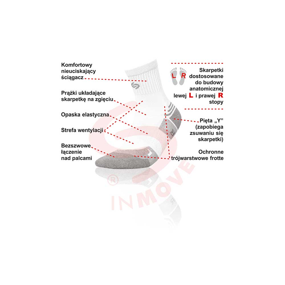 INMOVE Athletic Silver Deodorant to skarpetki przeznaczone do intensywnego uprawiania sportu, dopasowane do anatomicznego kształtu lewej (L) i prawej (R) stopy.