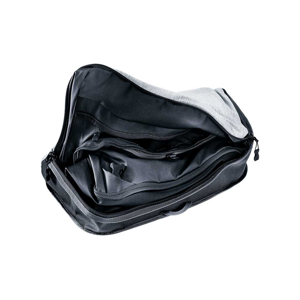 Jest to doskonałe rozwiązanie dla osób podróżujących samochodem, autokarem czy samolotem. Kształt zbliżony do prostopadłościanu ułatwia pakowanie. W komorze głównej mamy do dyspozycji dwie kieszenie z siatki zapinane na suwak oraz dodatkowo troki które zapobiegają przemieszczaniu się zawartości. Suwak komory głównej jest tak zaprojektowany że pozwala na zapięcie go małą kłódką turystyczną (kłódka nie wchodzi w skład zestawu). Od zewnątrz torby po obu stronach znajdują się kieszenie zapinane na suwak. Z boku torby znajduje się mniejsza kieszonka zapinana na suwak, a w jej wnętrzu znajdziemy odpinany uchwyt na klucze. Główną zaletą torby jest możliwość transportowania jej jako plecak. Szelki są odpinane z możliwością ich schowania w specjalnej kieszeni znajdującej się na froncie torby. Kolejnym niezaprzeczalnym atutem jest system składania na czas kiedy nie jest nam potrzebna. Cała torba po złożeniu mieści się w wywróconej na lewą stronę jednej z kieszeni. Dzięki temu zabiegowi mały, foremny pakunek bez problemu przechowamy w szafie na półce. Materiał z którego jest wykonana torba jest niezwykle wytrzymały oraz w całości zabezpieczony dodatkową warstwą PU co zapewnia mu wodoodporność. Od zewnątrz po obu stronach torby znajdują się również wytrzymałe uchwyty do przenoszenia.