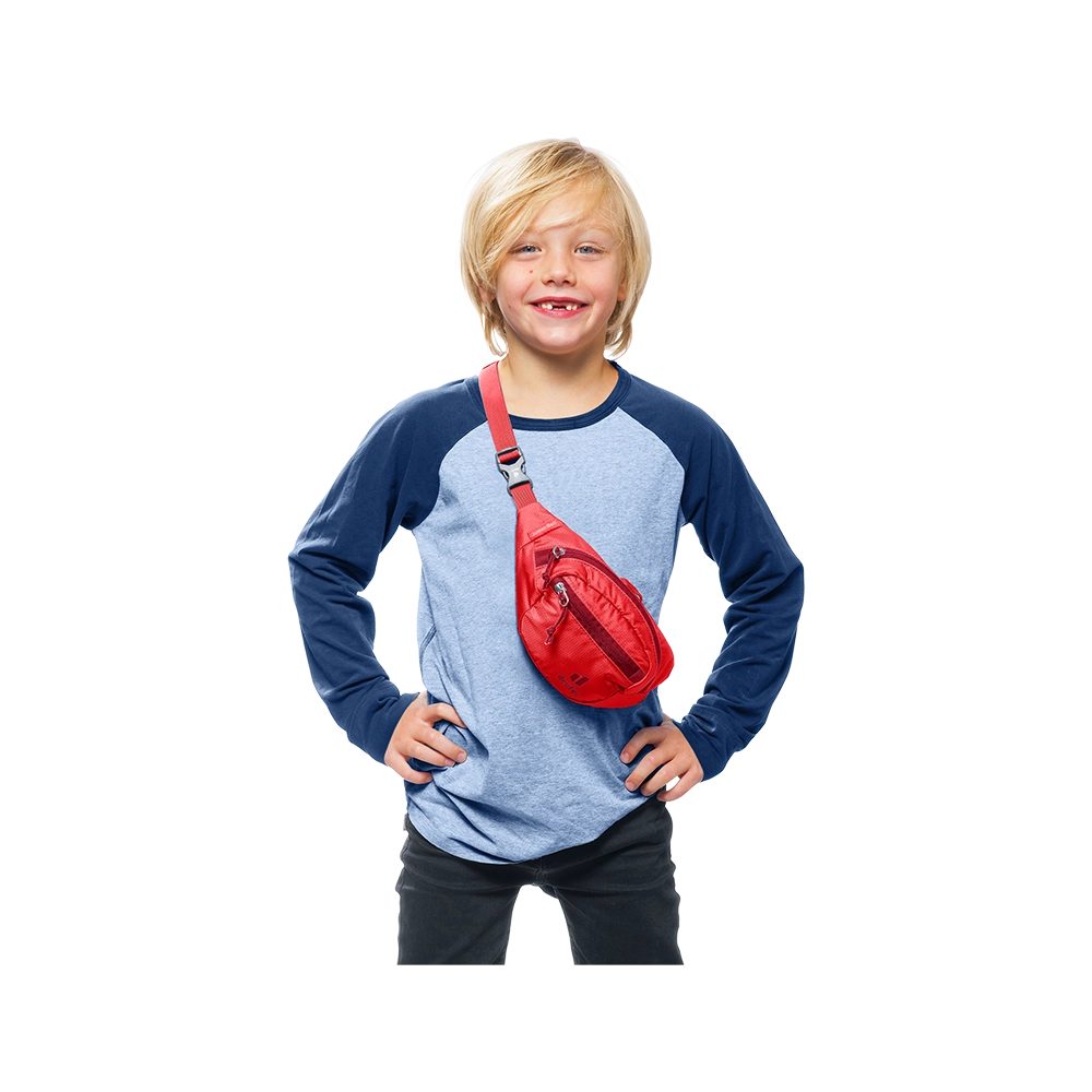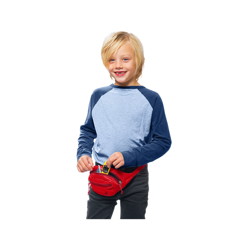 Deuter Junior Belt to funkcjonalna biodrówka dla najmłodszych z dwoma kieszeniami zapinanymi na suwak.