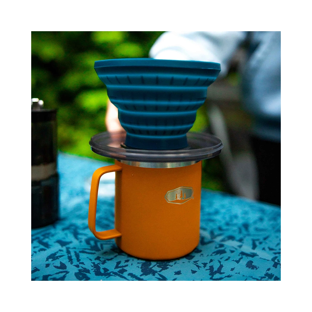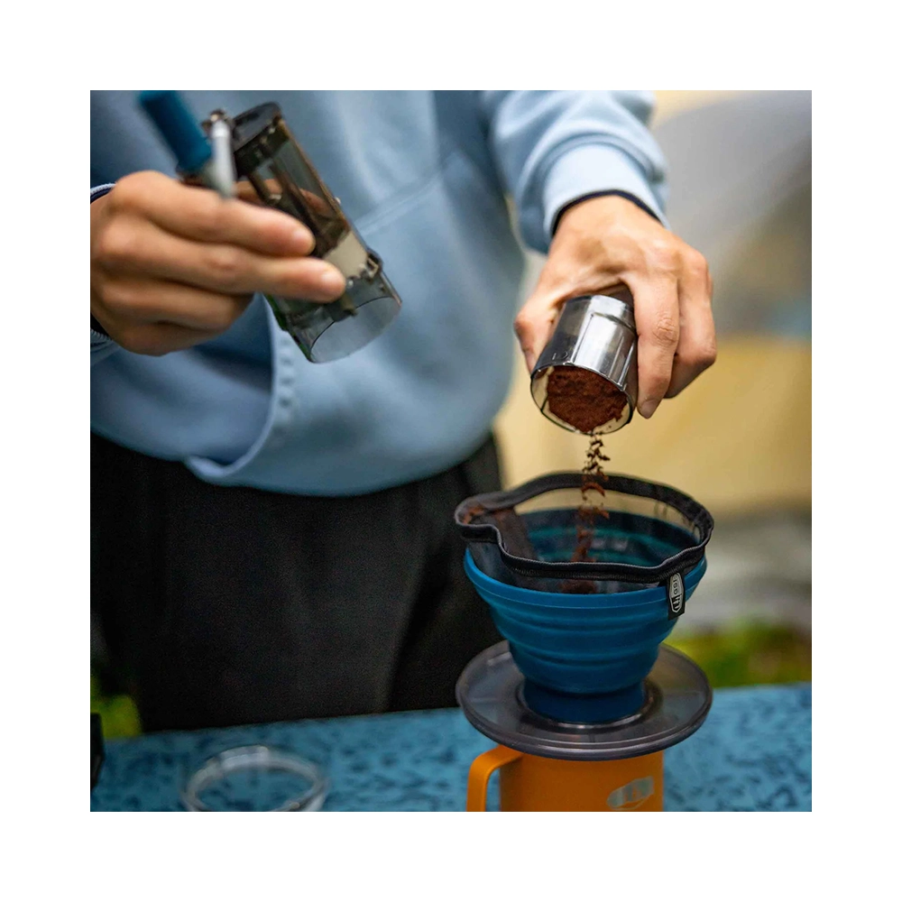 GSI Collapsible JavaDrip Blue to idealny filtr do kawy typu pour-over dla podróżników, turystów i wszystkich, którzy cenią świeżą kawę w drodze.