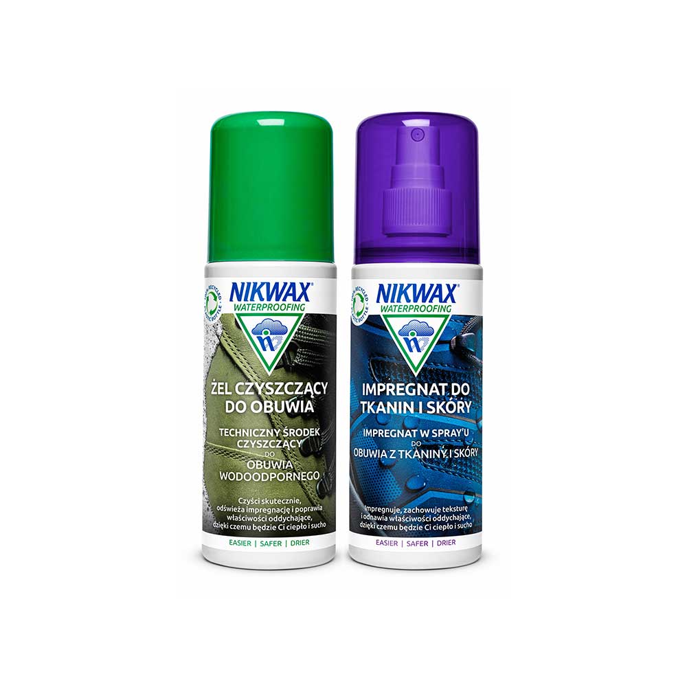 Nikwax Fabric & Leather Spray + Footwear Cleaning Gel to zestaw do czyszczenia oraz impregnacji obuwia ze skóry i tkanin.