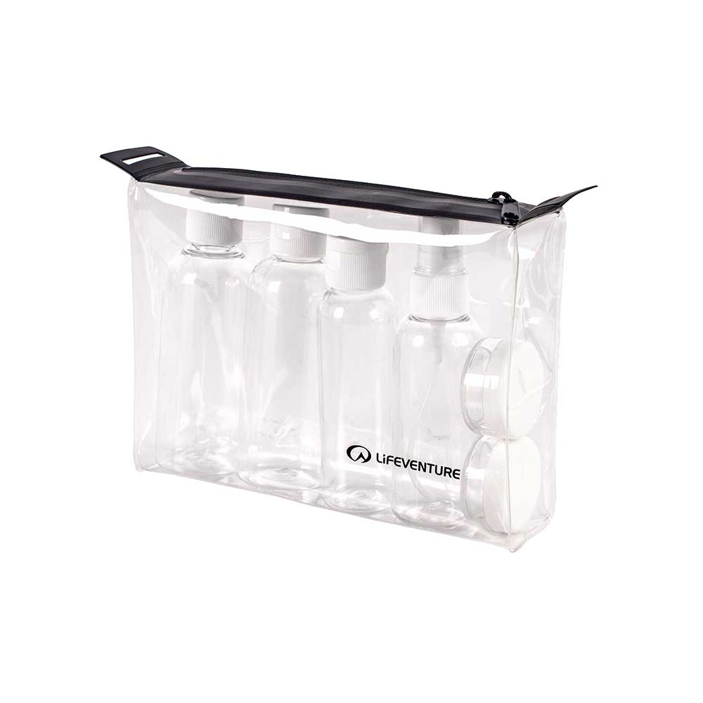 Lifeventure Flight Bottle Set to podręczny zestaw pojemników na płyny stworzony specjalnie dla podróżujących samolotem.